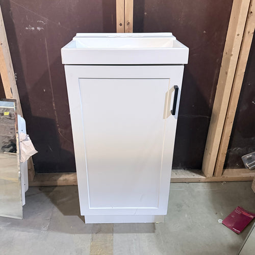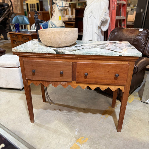 • Repurposed Single Bathroom Vanity with Vessel Sink and Faucet
