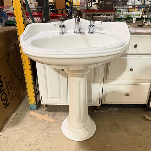 • Fluted Column Pedestal Sink with Chrome Faucet Hardware