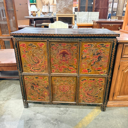 Antique Sino-Tibetan Cabinet with Polychromatic Painted Dragons and Flowers