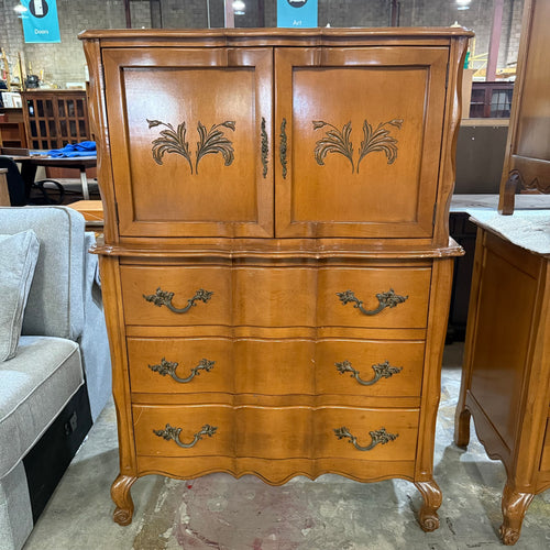 Vintage Mid-Century Walnut Carved Chest Of Drawers