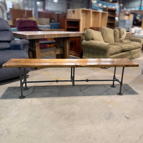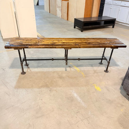 Pipe Legged 4-Slat Reclaimed Wood Rustic/Industrial Bench