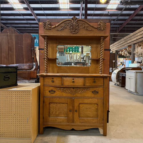 Ornately Carved Vintage Oak Sideboard with Mirror