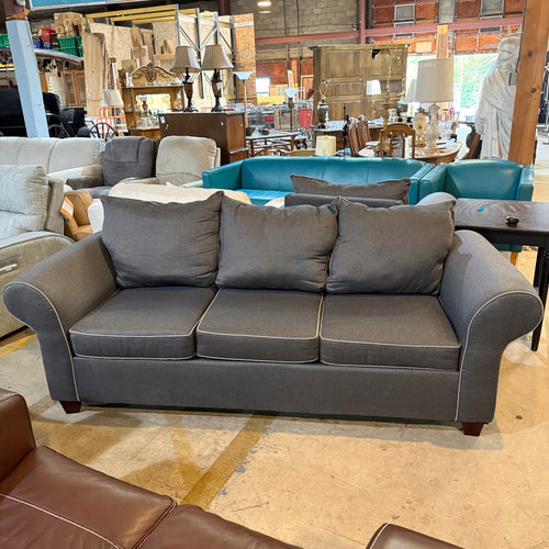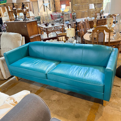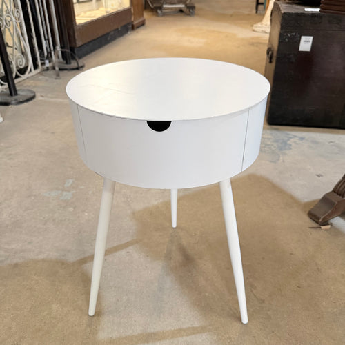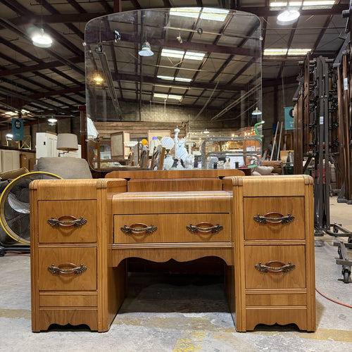 Vintage Vanity with Waterfall Edge and Large Frameless Mirror