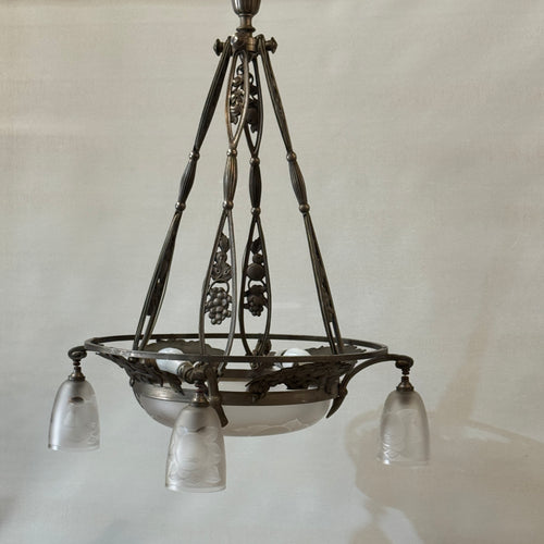 Vintage (c. 1930) European/Likely French Art Deco 8-Light Bowl Chandelier