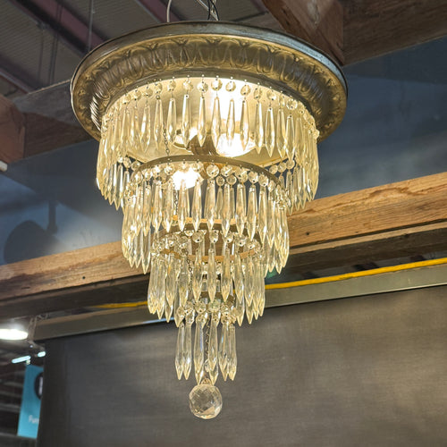Antique (c. 1925) Ornate 2-Light Multi-Tiered Crystal Chandelier
