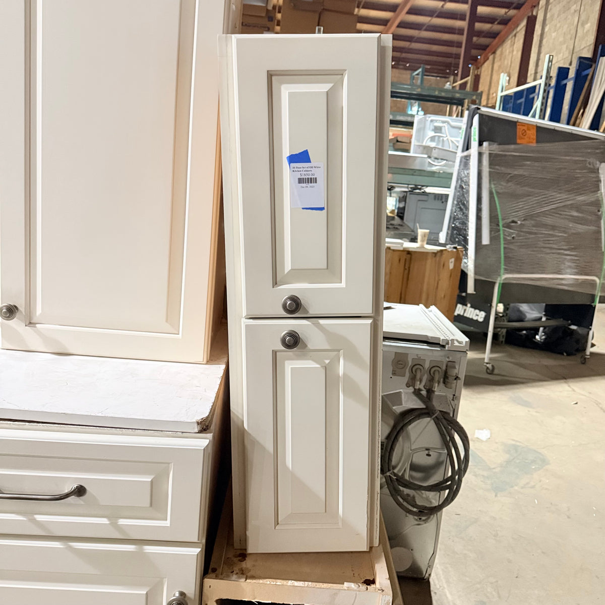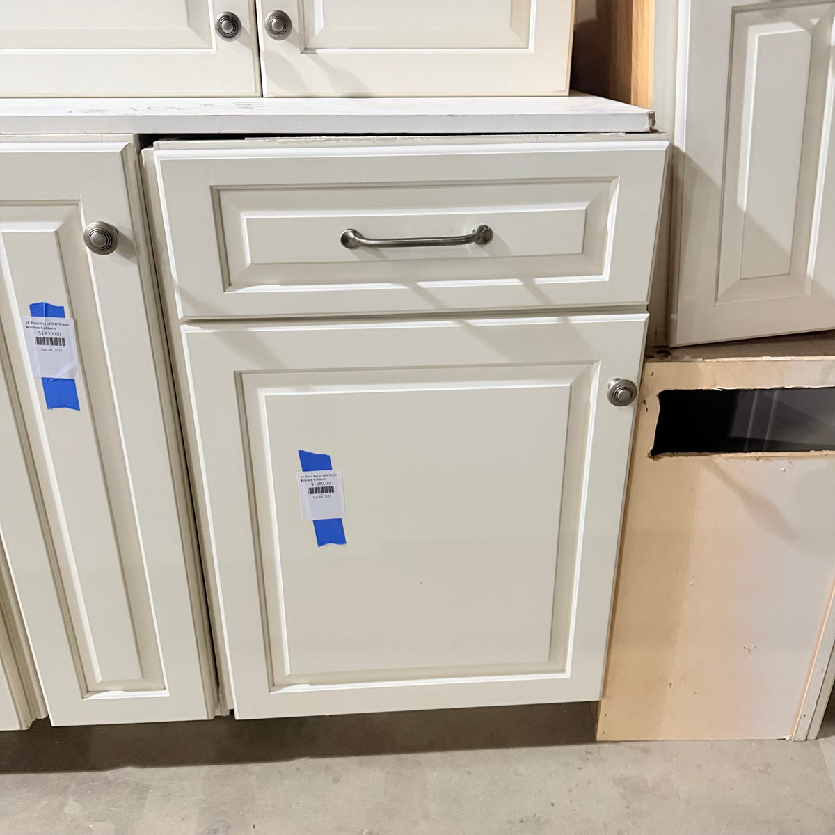 This 10 piece set of off-white kitchen cabinets by Signature Custom Cabinetry features: