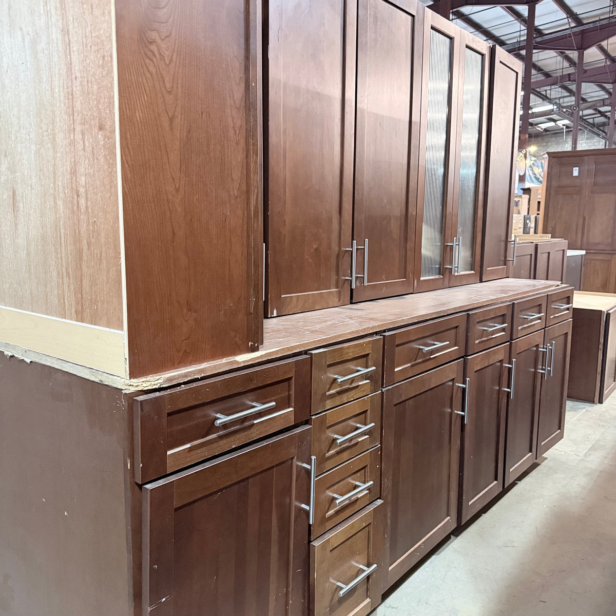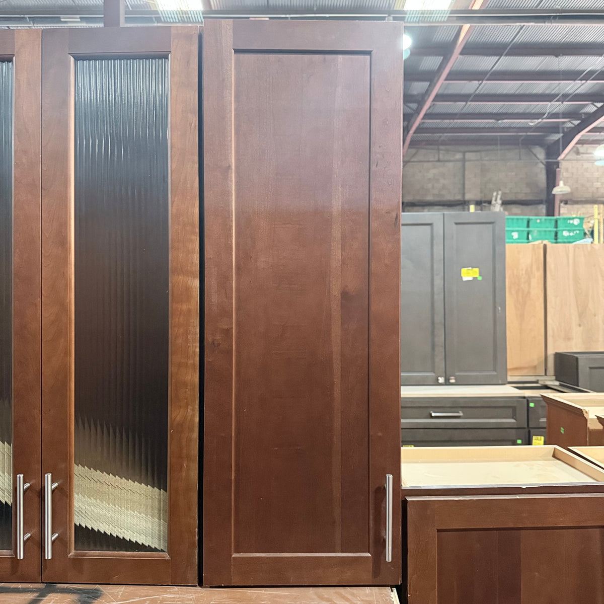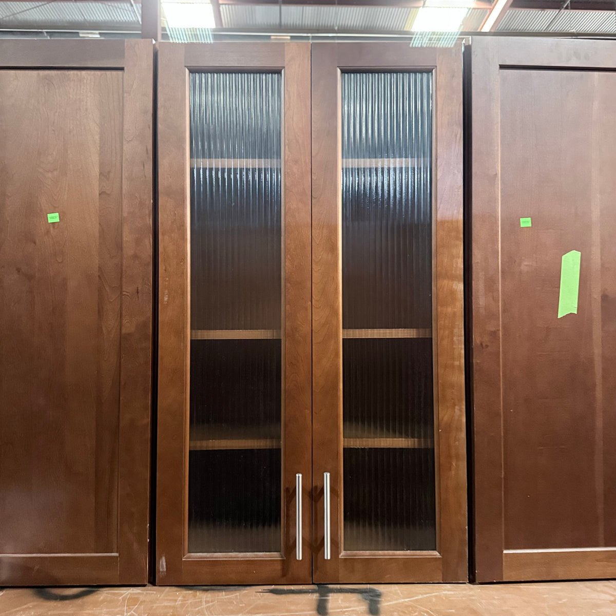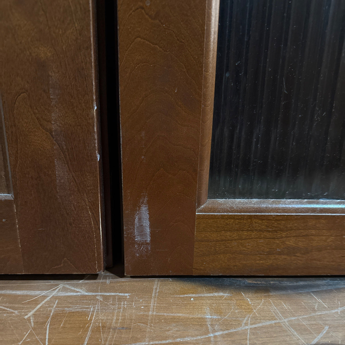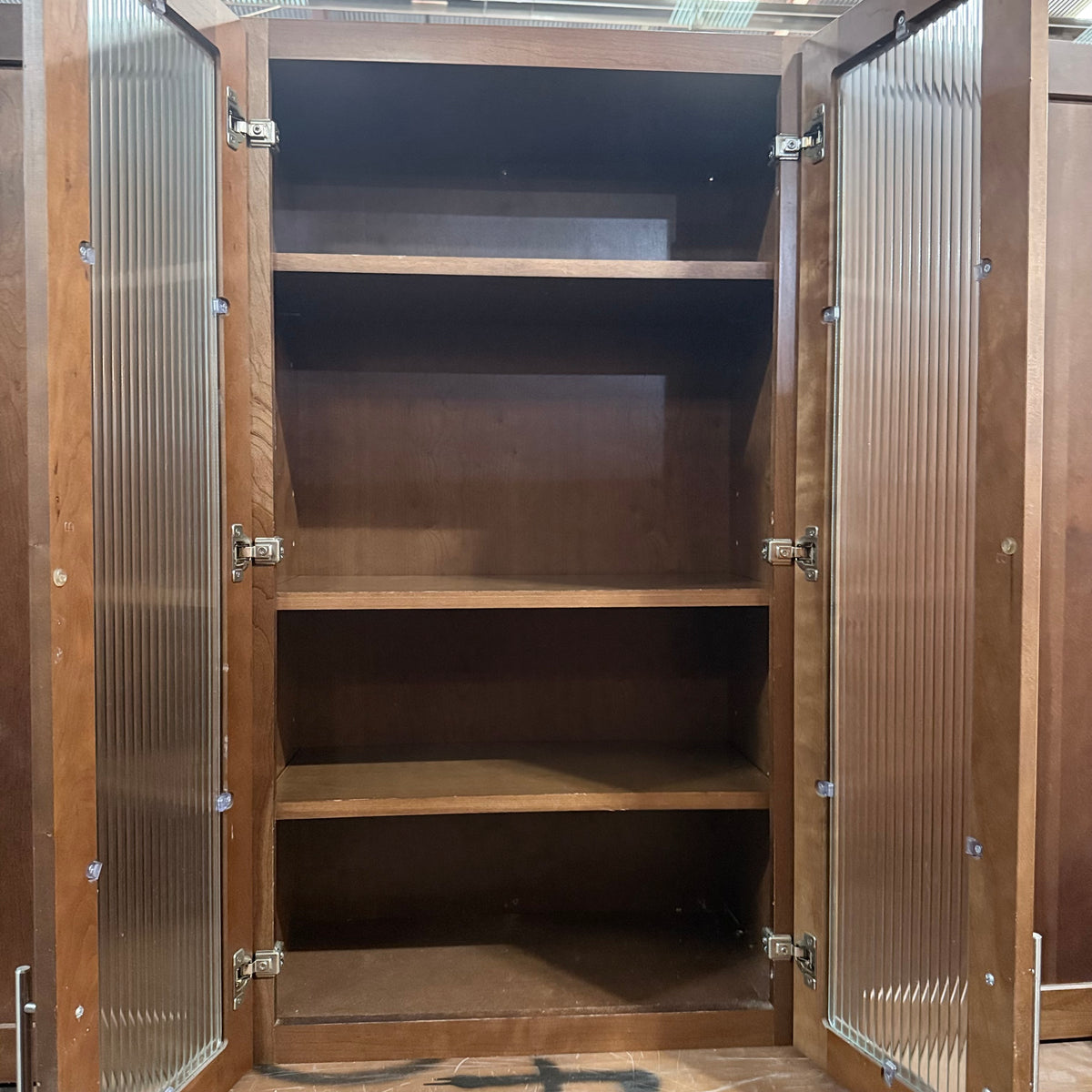 - One upper cabinet with ribbed glass panel doors