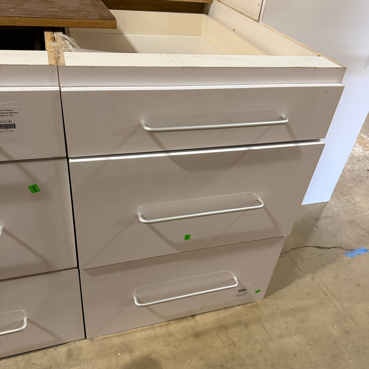 - No toe kicks included for any of the base cabinets
