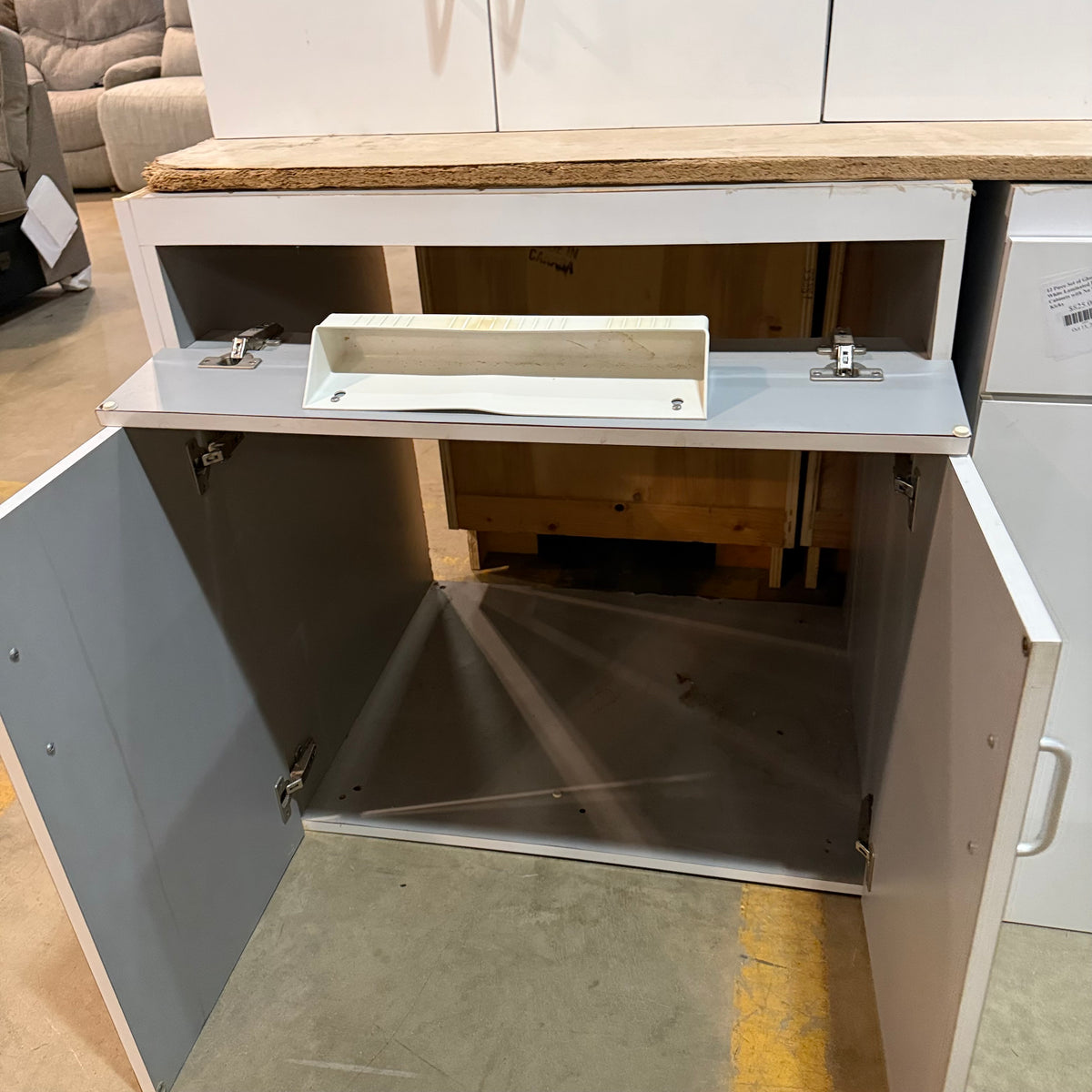 - Sink base cabinet with a tip-out drawer