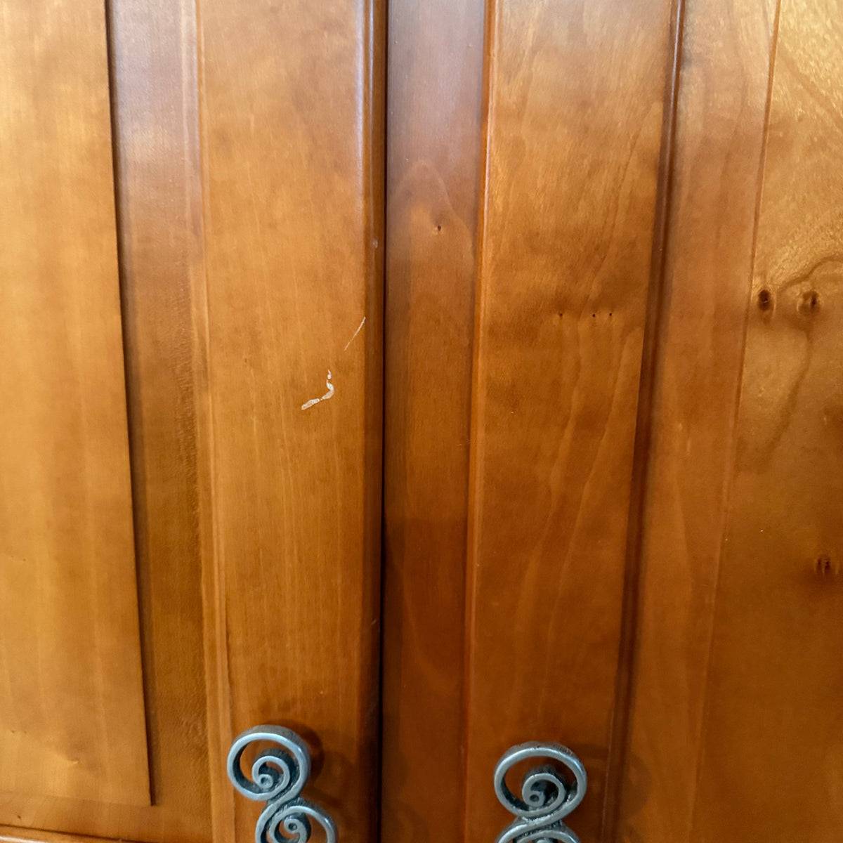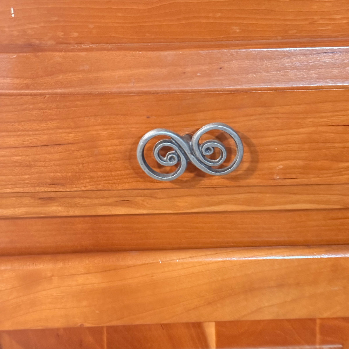 - Pewter finished, S-shaped swirled pulls