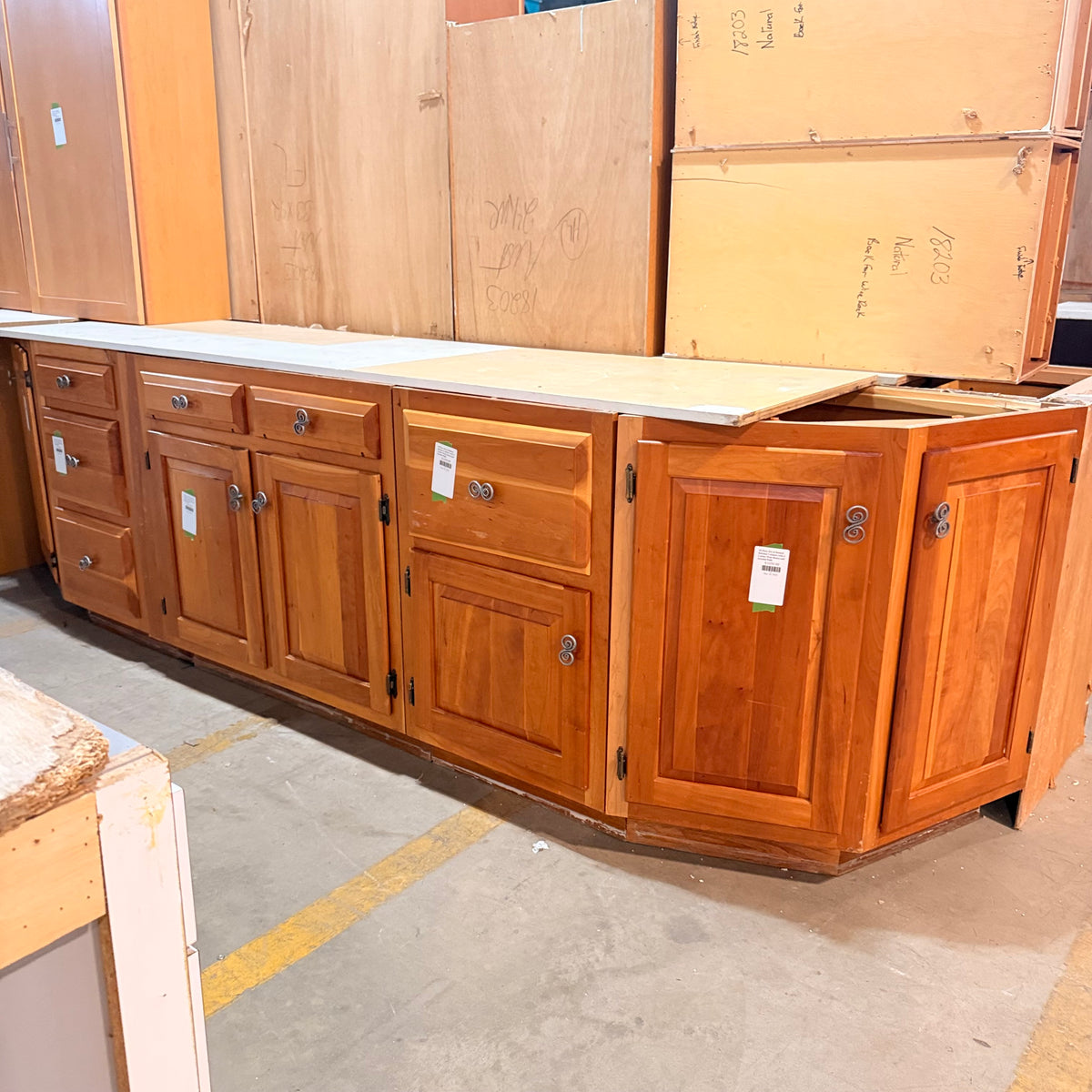 - Two base corner cabinets