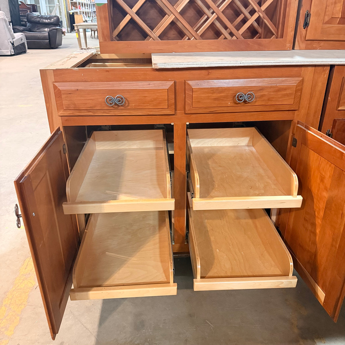 - Roll-out shelves in some of the bases