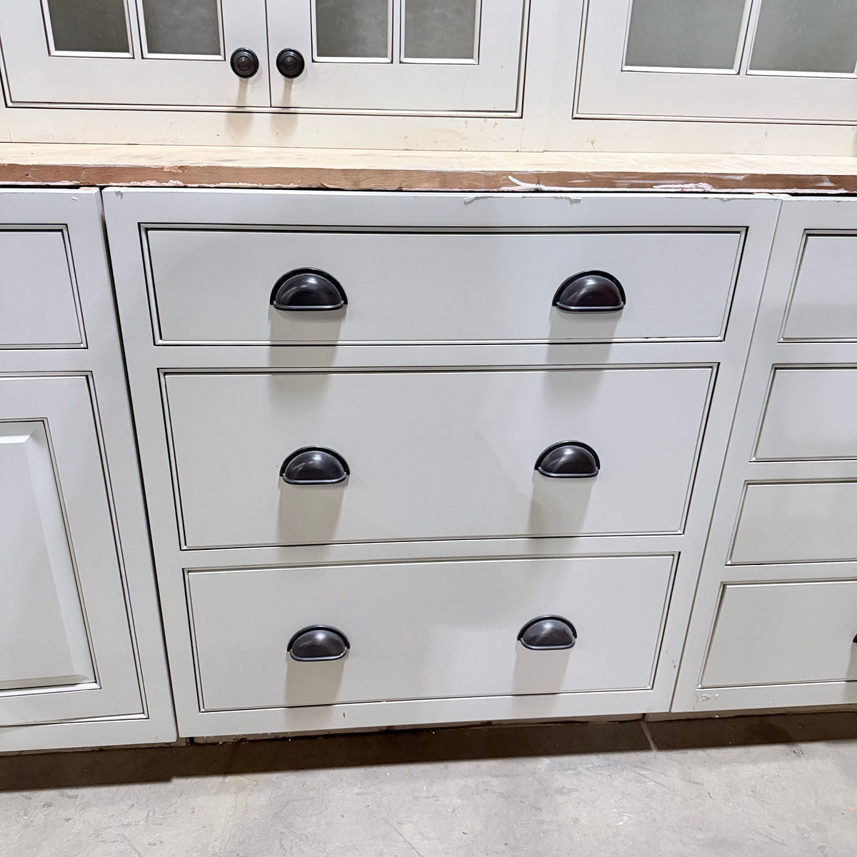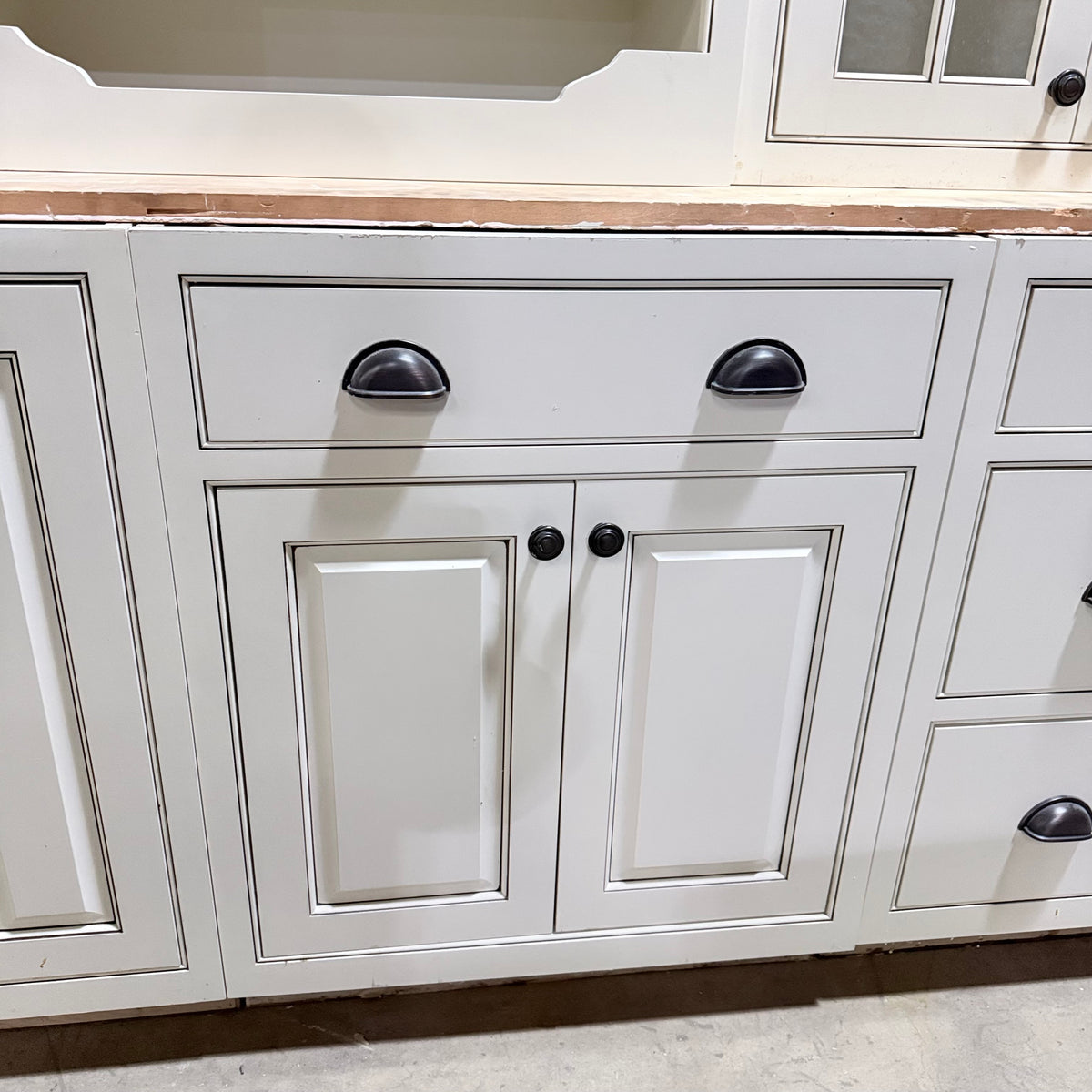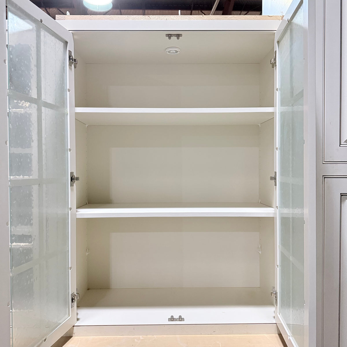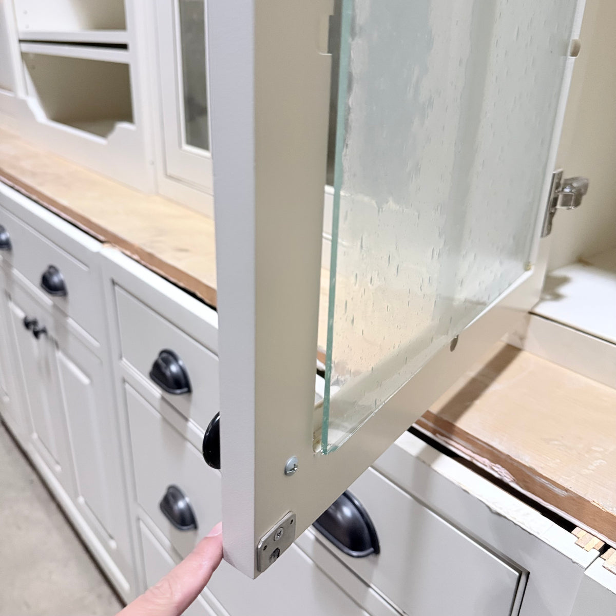- Three (3) upper cabinets with seeded glass panel doors