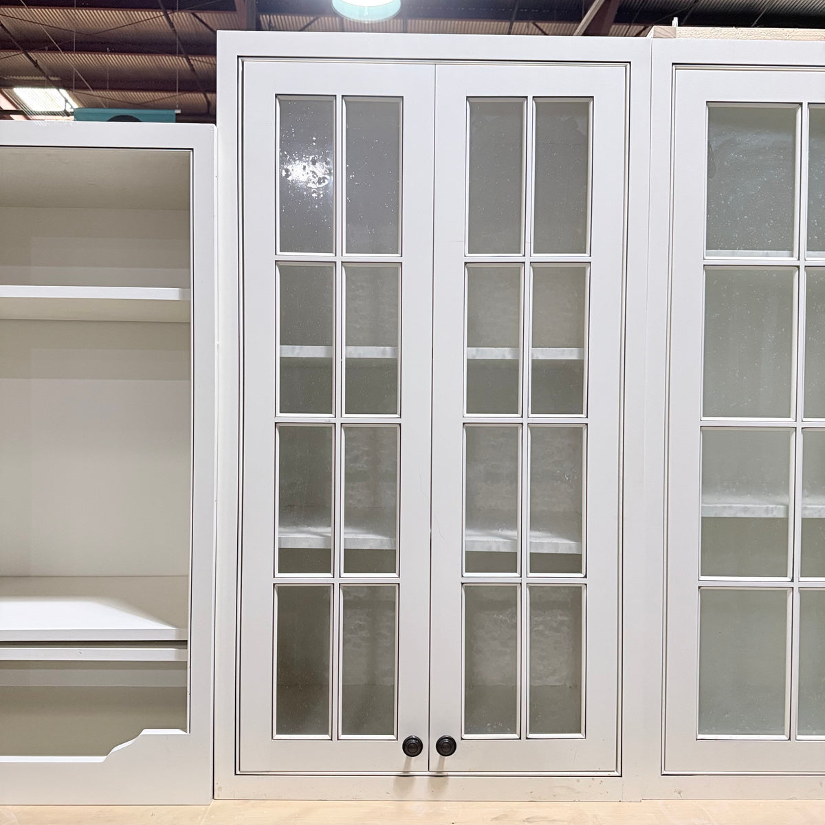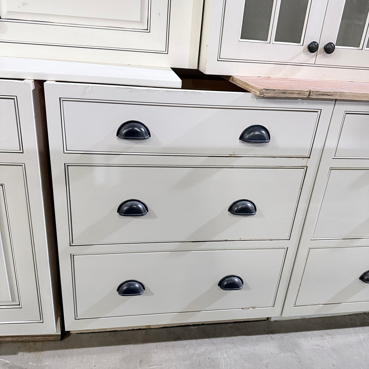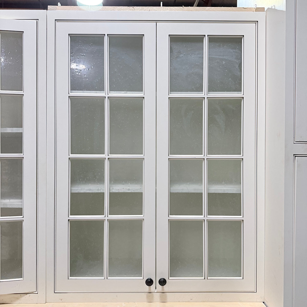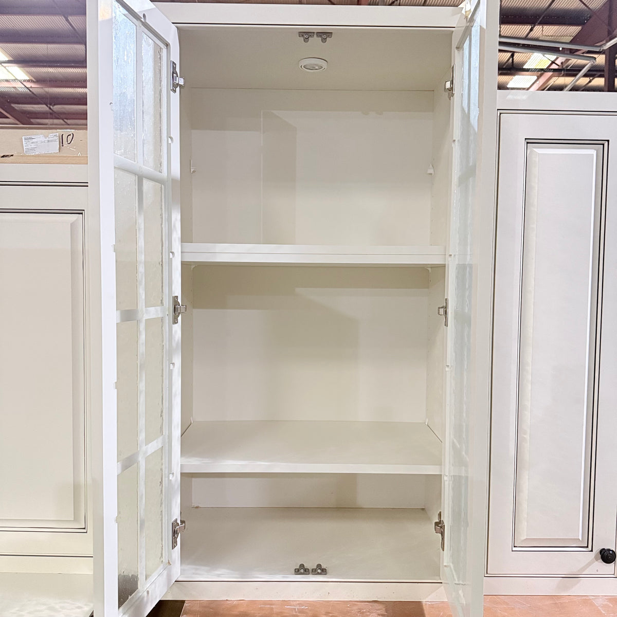 - Three (3) upper cabinets with seeded glass panel doors