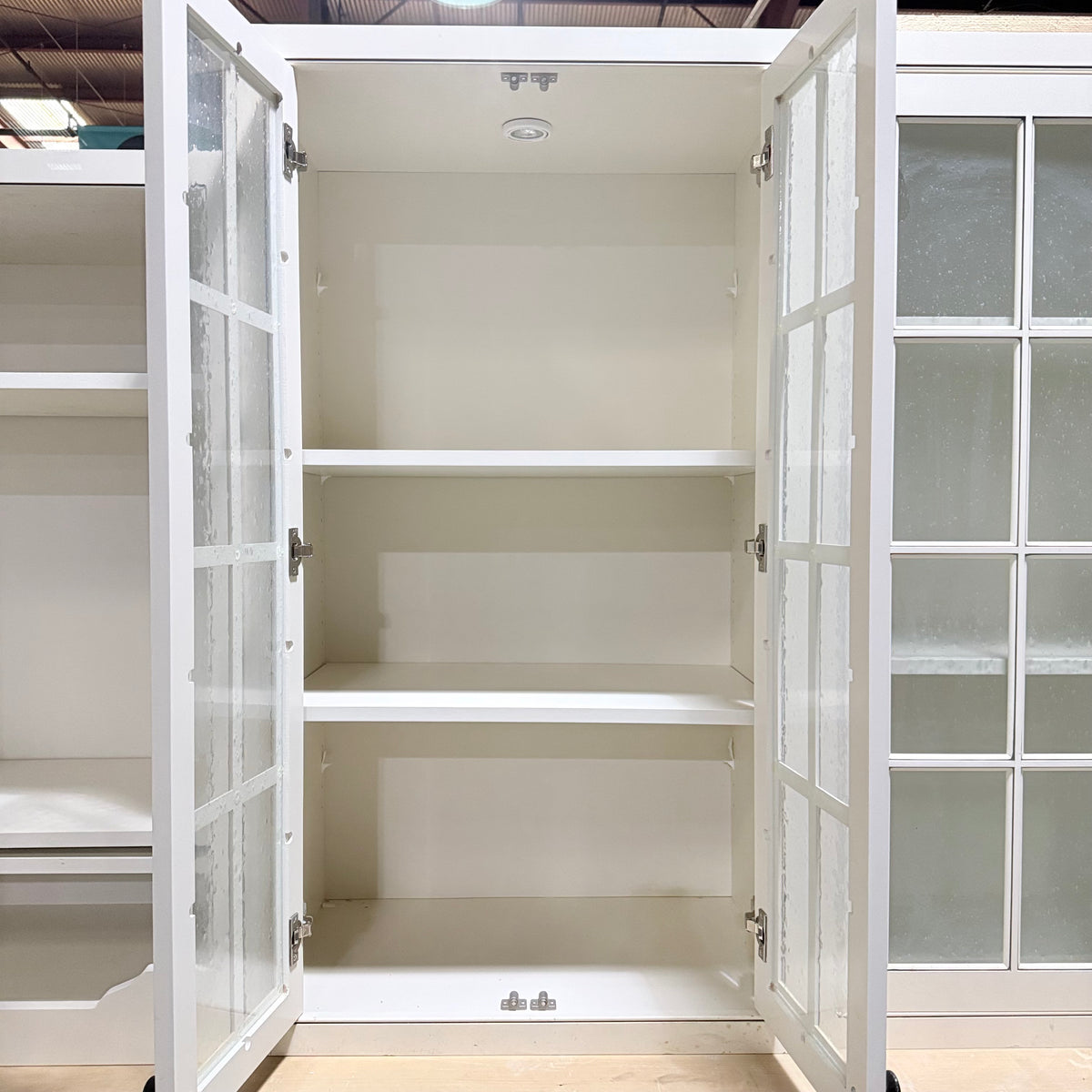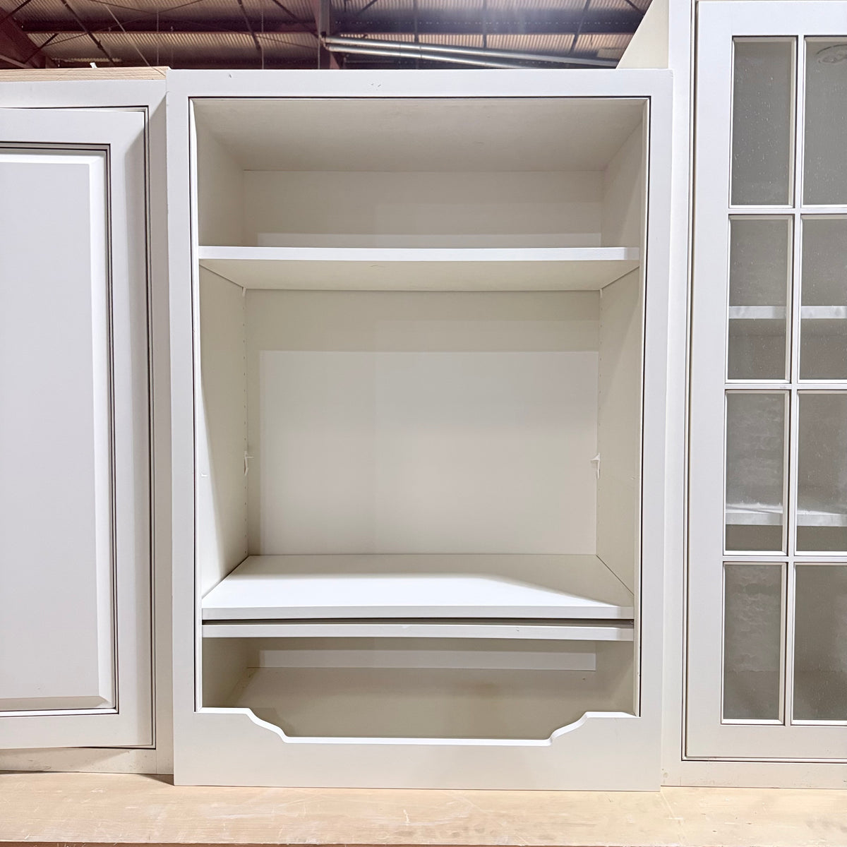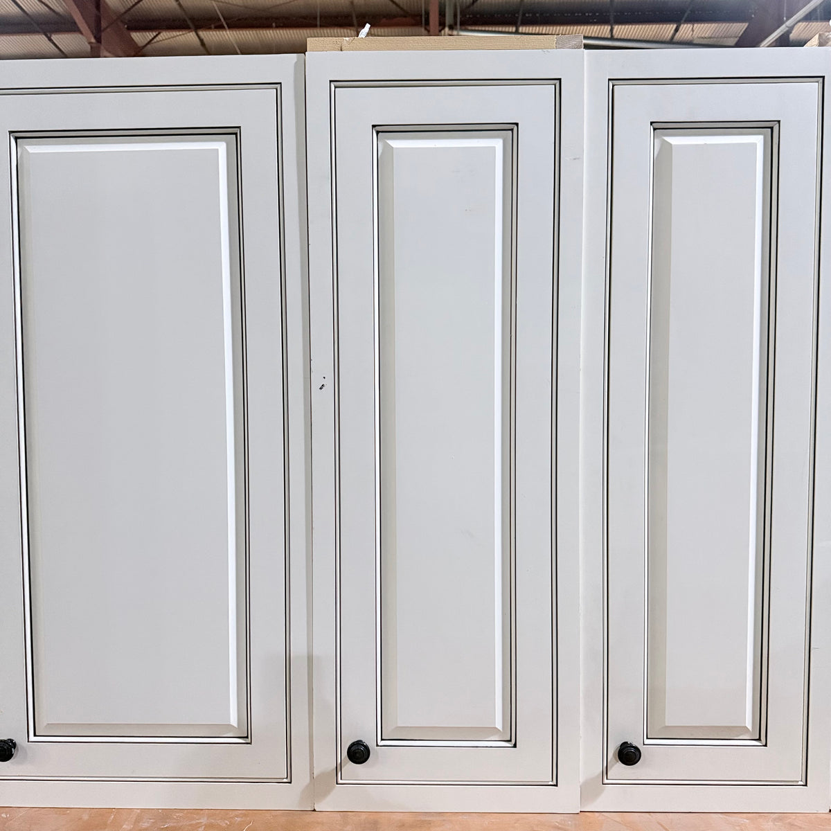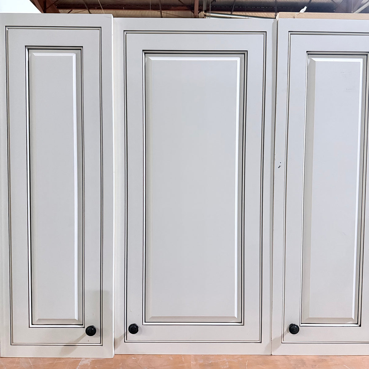 - Three (3) upper cabinets with seeded glass panel doors