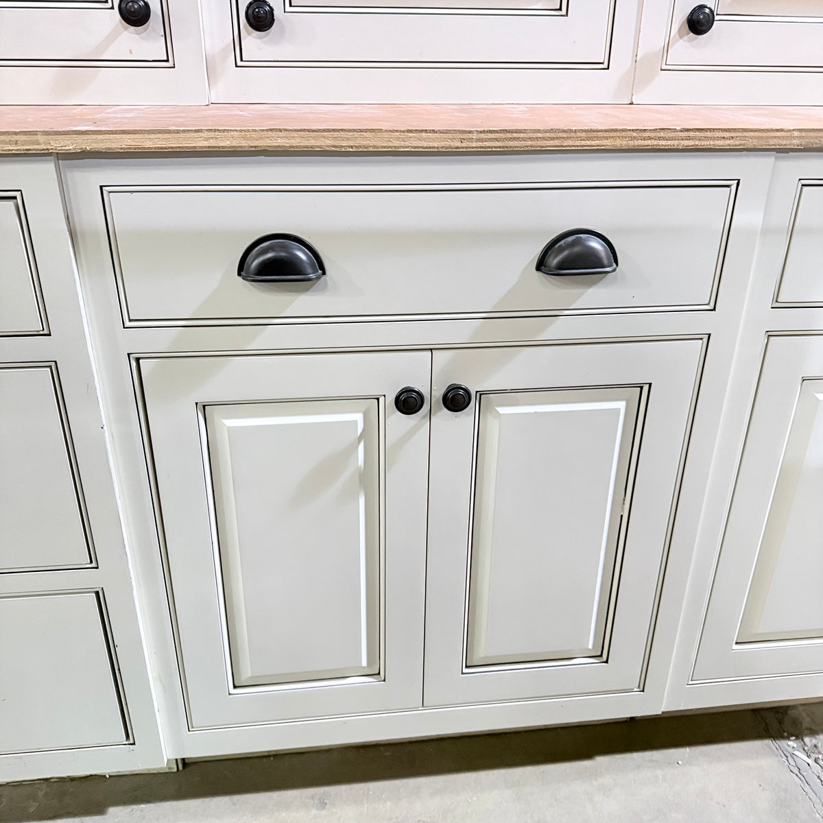 - Raised panel door and drawer fronts finished with a dark glazing to accentuate decorative lines and details