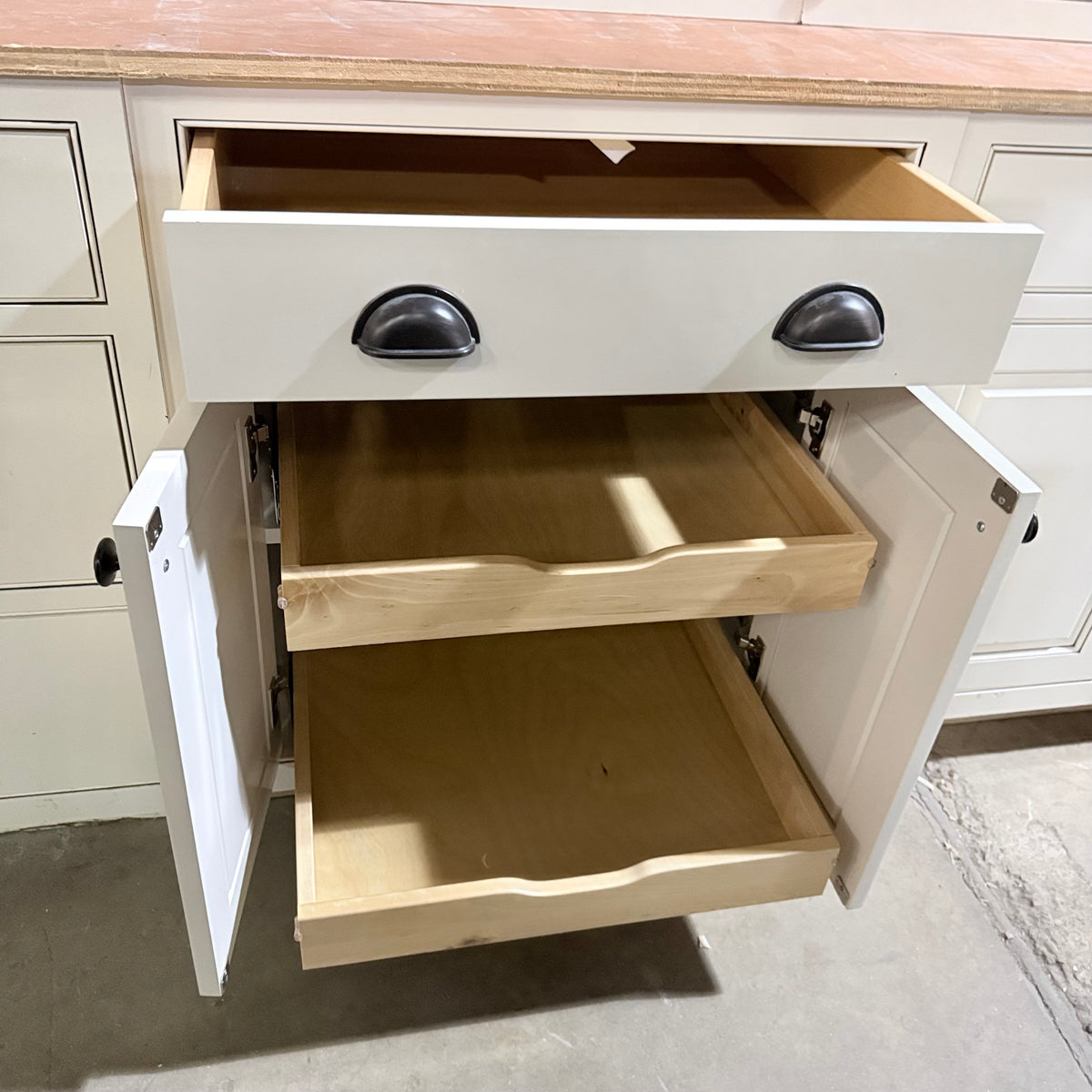 - Roll-out shelves in some of the bases