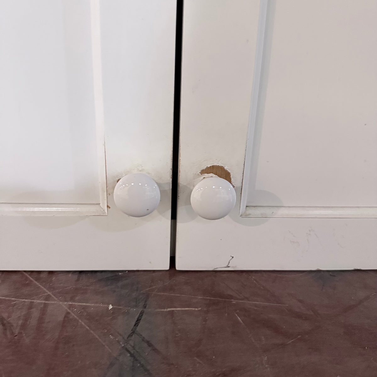 - White rounded knob pulls