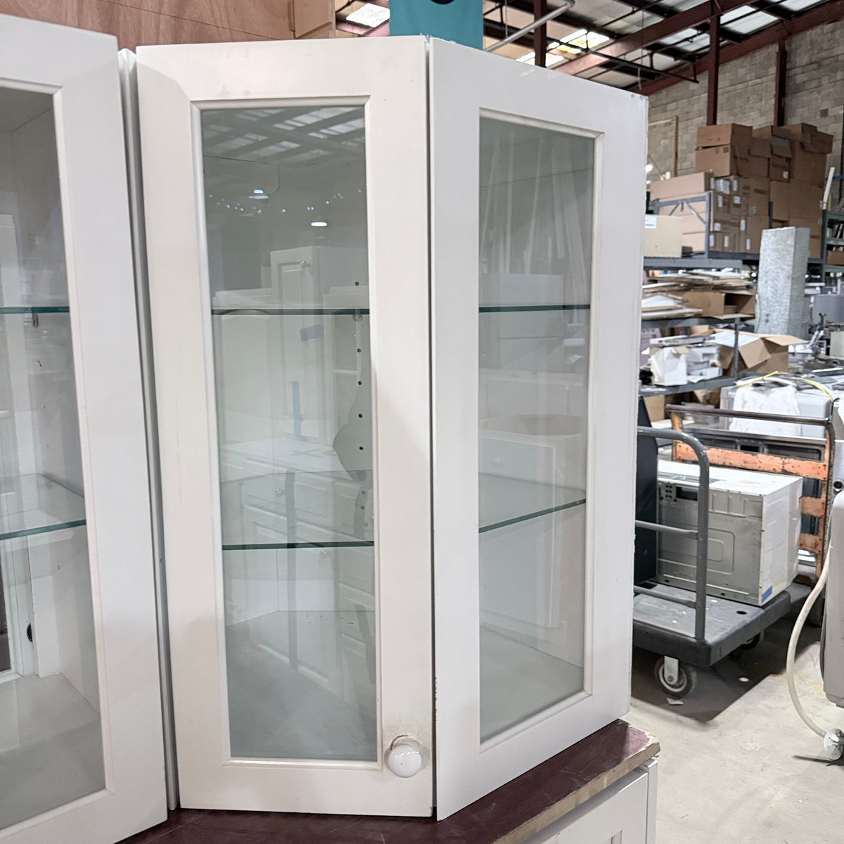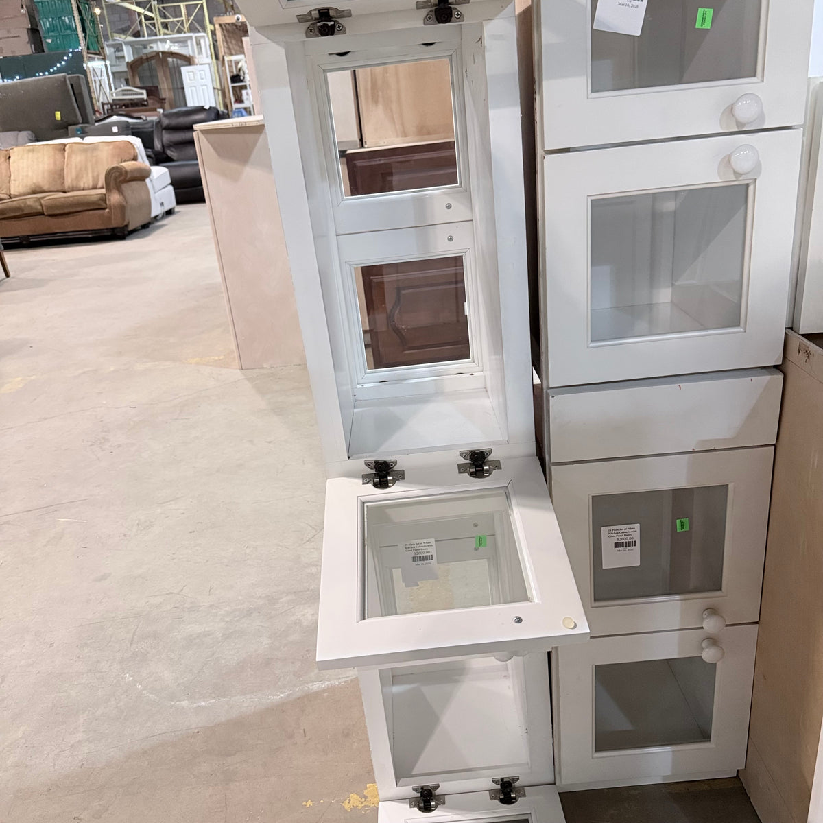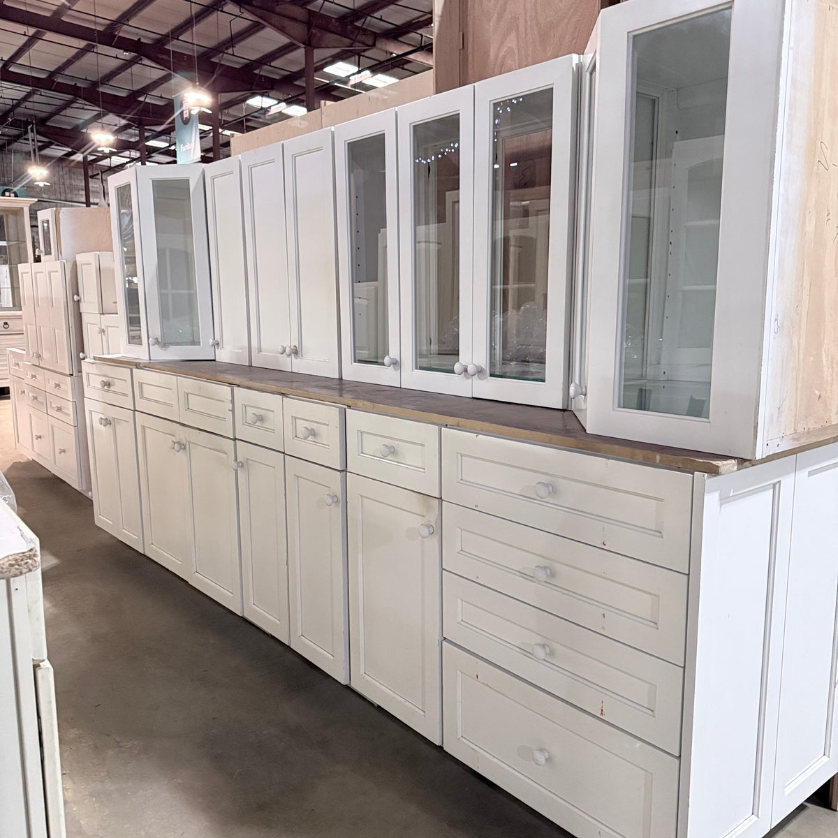 - Nine (9) upper cabinets with glass panel doors, including five (5) of which are double-sided