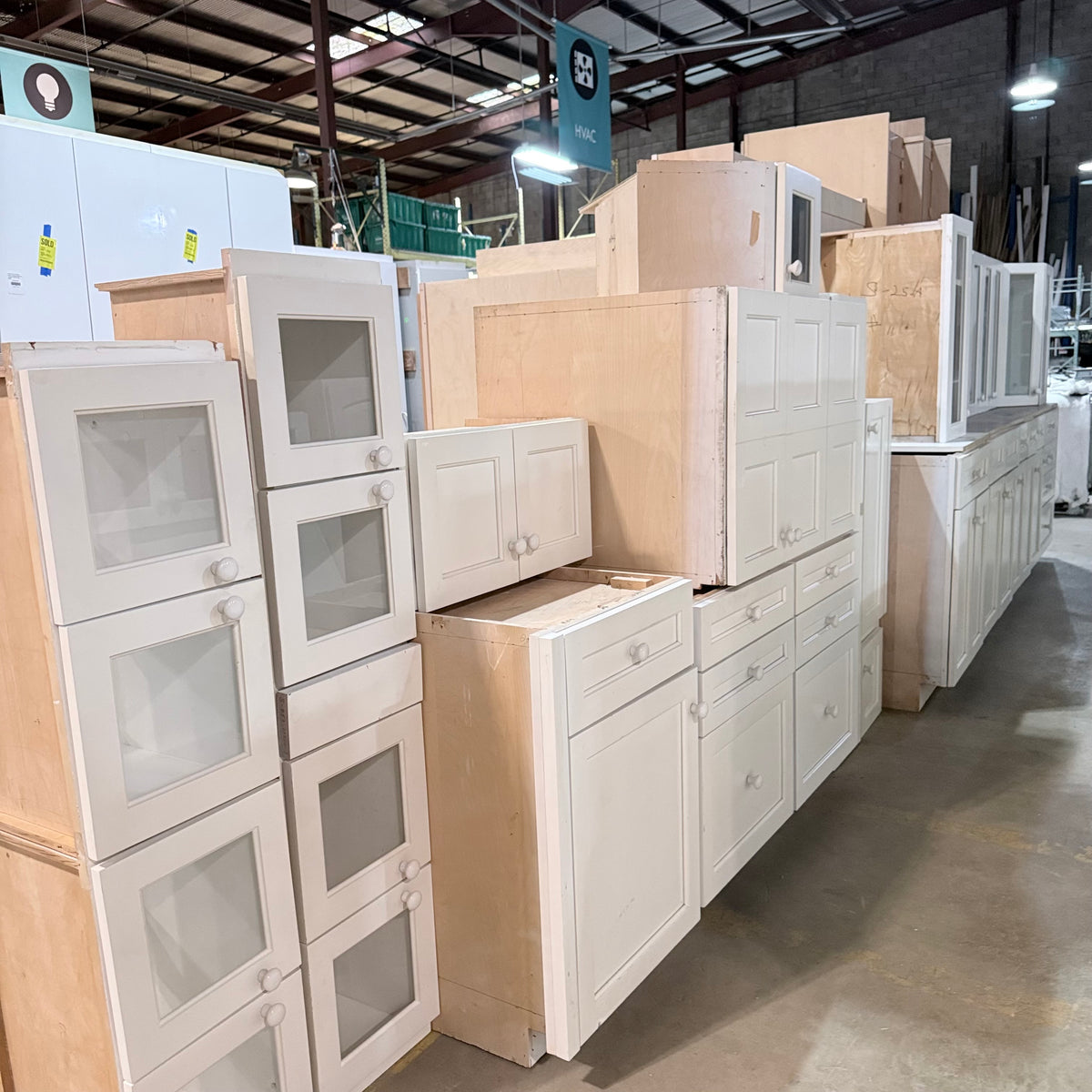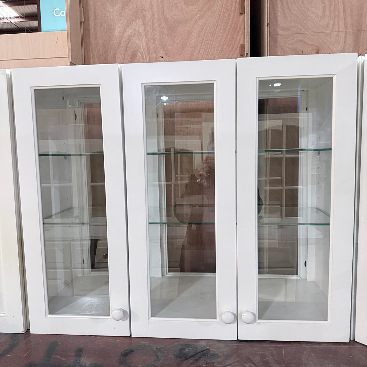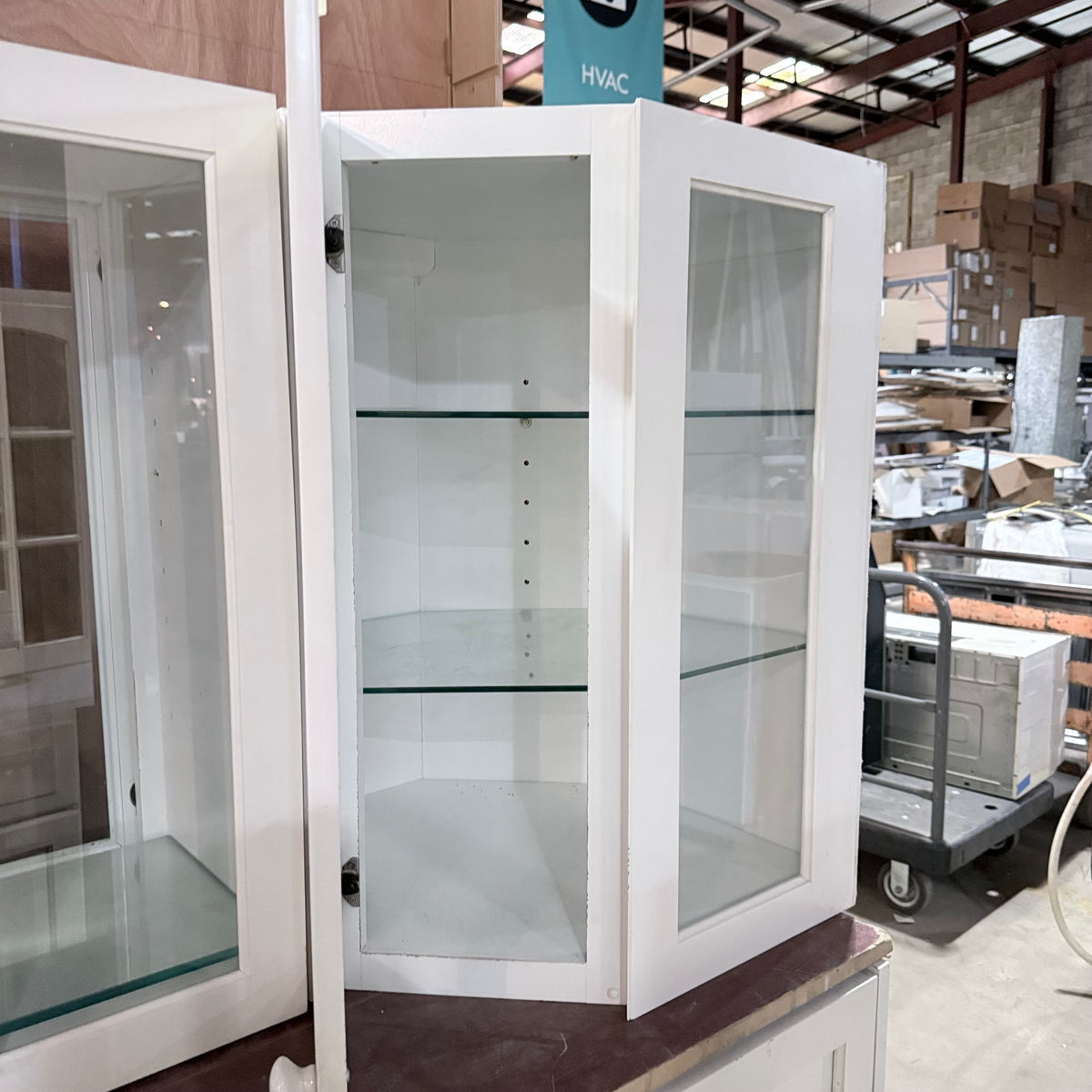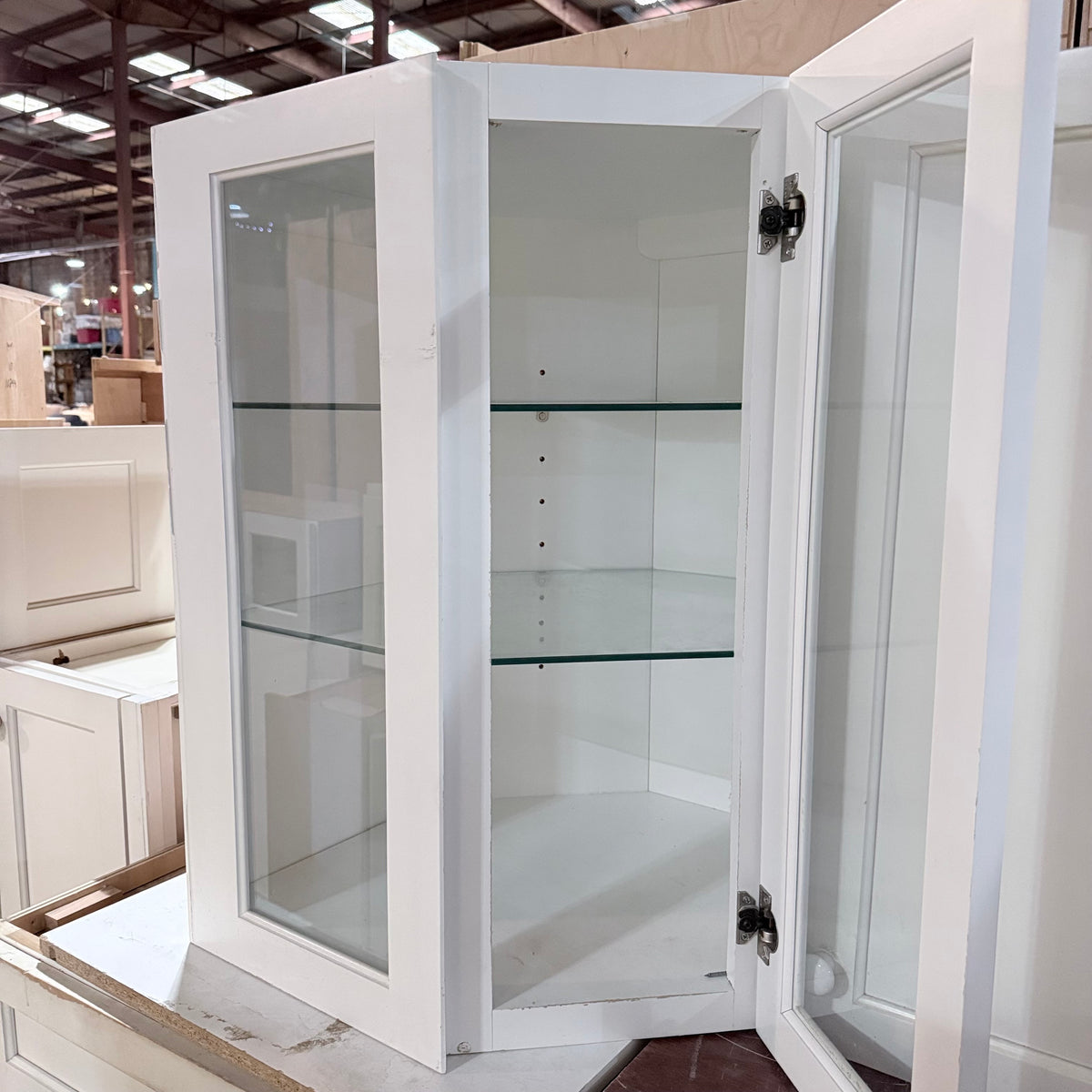 - Nine (9) upper cabinets with glass panel doors, including five (5) of which are double-sided