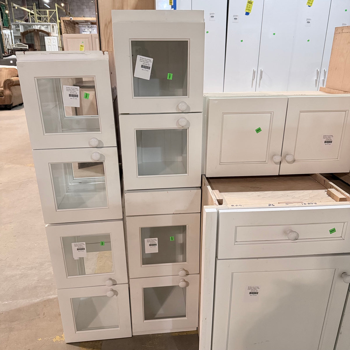 This 26 piece set of white kitchen cabinets features: