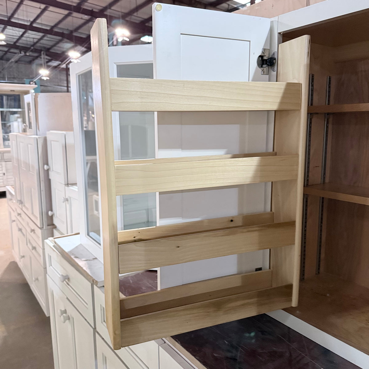 - Spice rack inside one of the upper cabinets