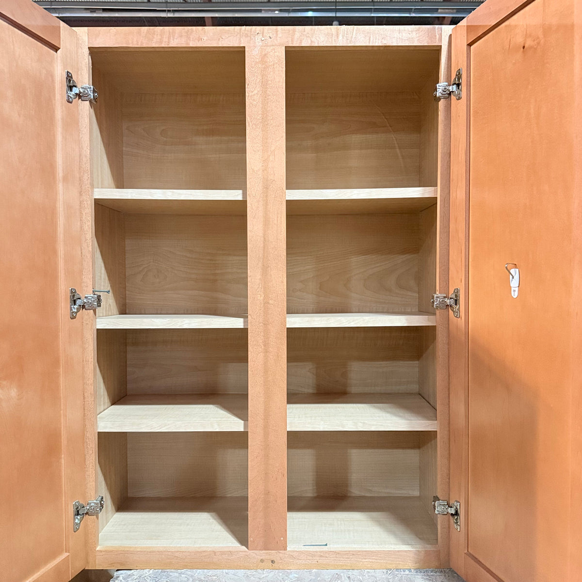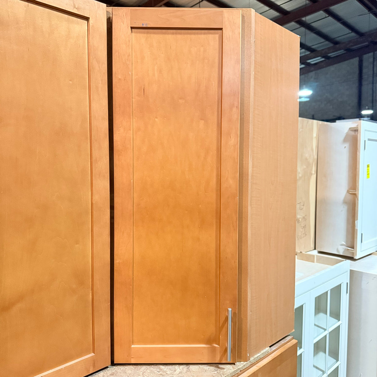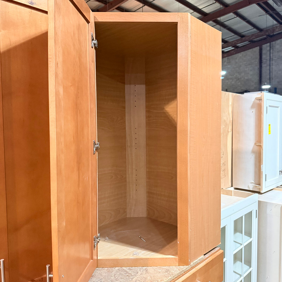 42" High x 24" Wide x 24" Deep (upper corner cabinet; note: this cabinet is missing its shelving)