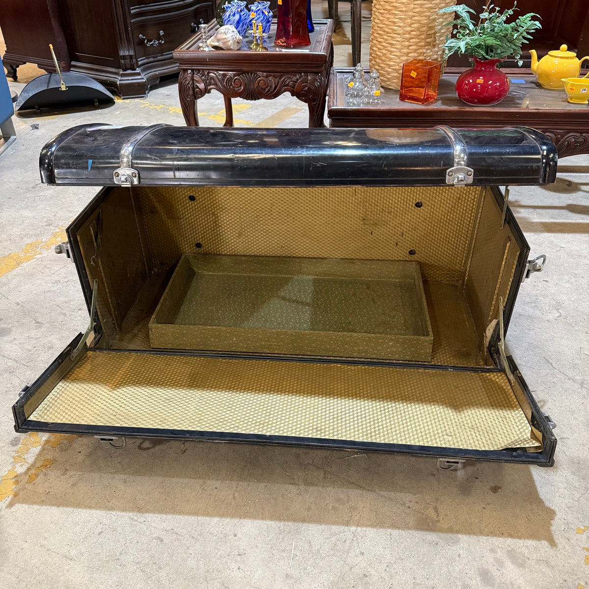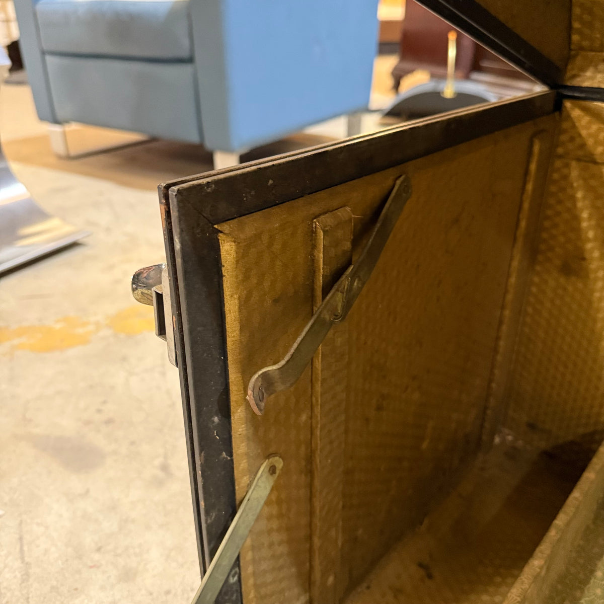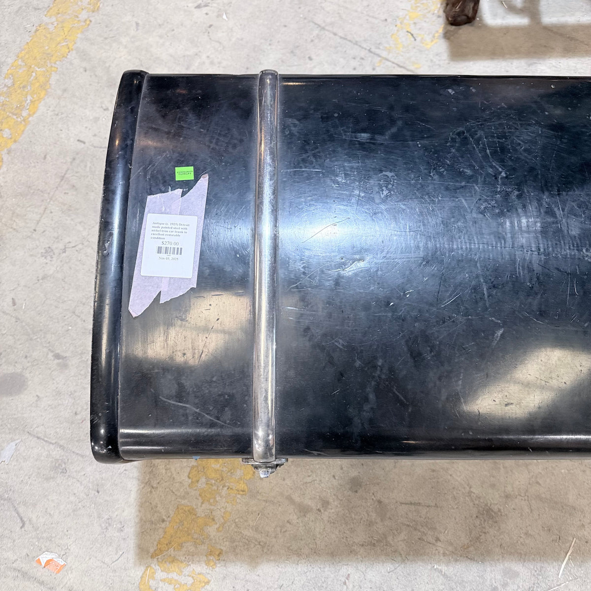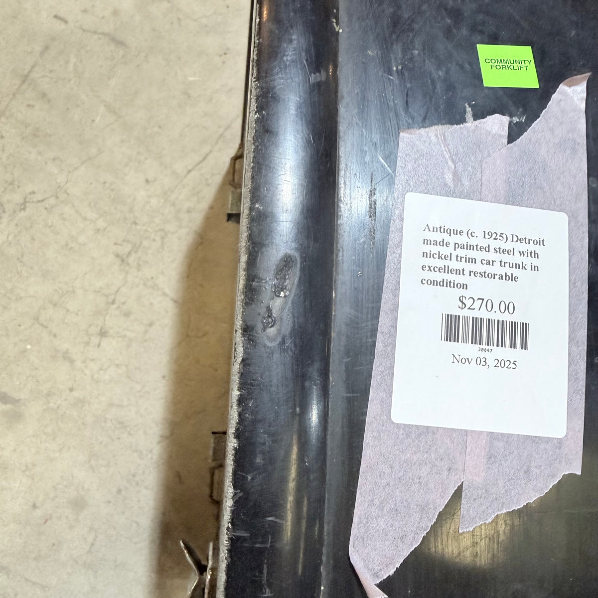 This product is a previously owned antique 1930's Detroit-made rear car trunk. It is in great, restorable condition and appears to originally have possibly been from a Cadillac, Packard, etc. It has latch hardware to open and can be opened two ways, just the top or both at the top and the front.