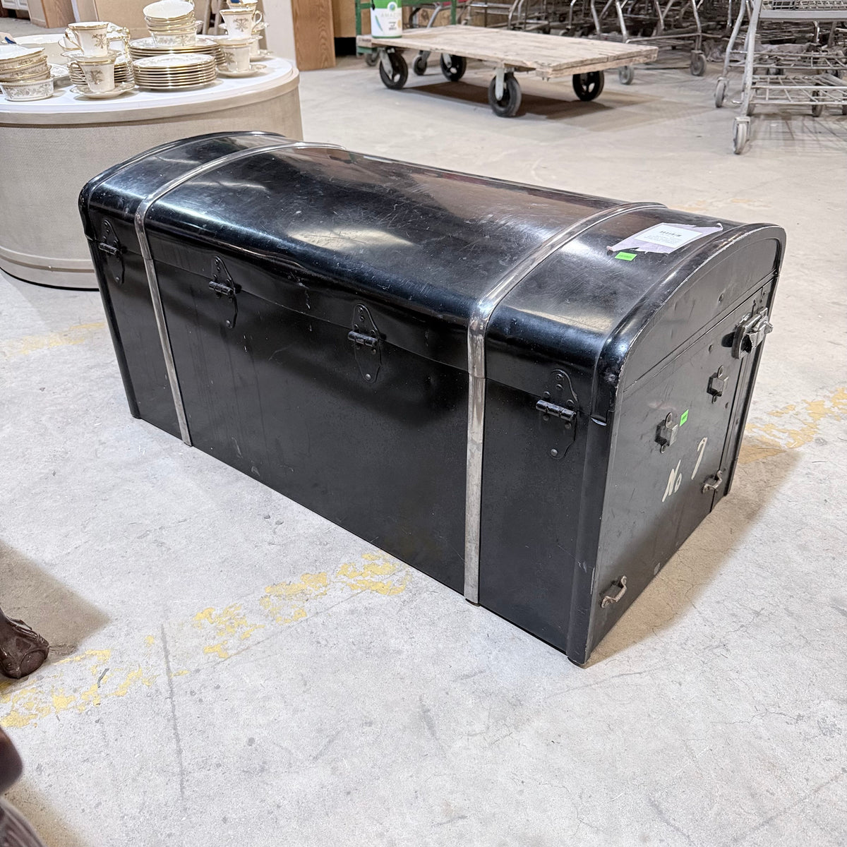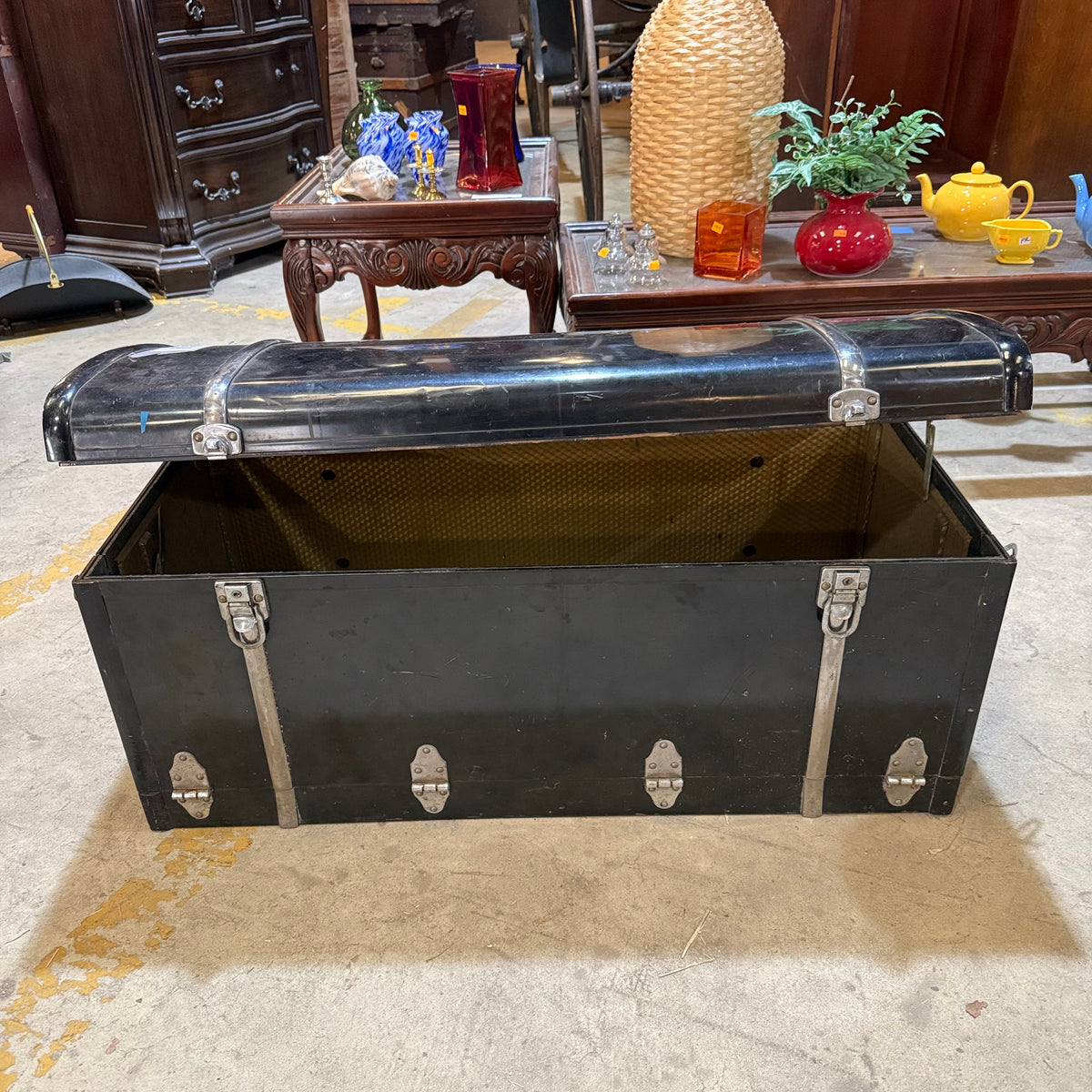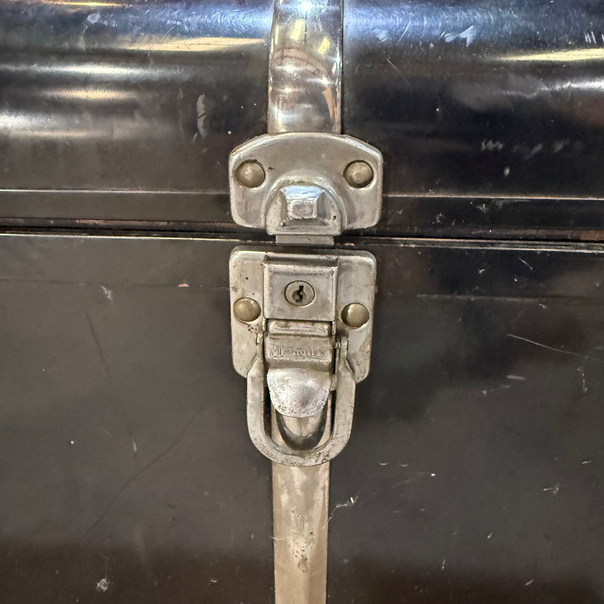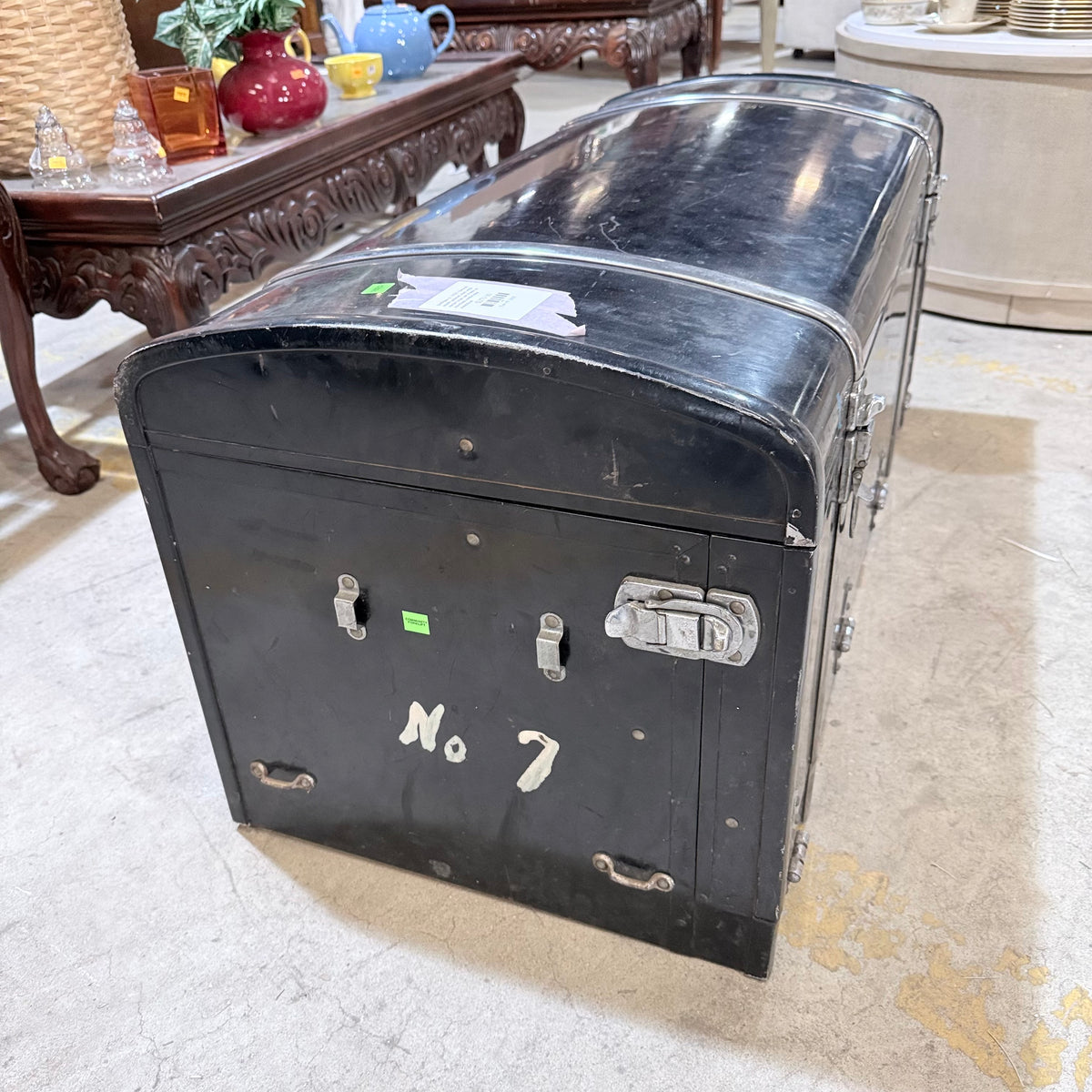 This product is a previously owned antique 1930's Detroit-made rear car trunk. It is in great, restorable condition and appears to originally have possibly been from a Cadillac, Packard, etc. It has latch hardware to open and can be opened two ways, just the top or both at the top and the front.