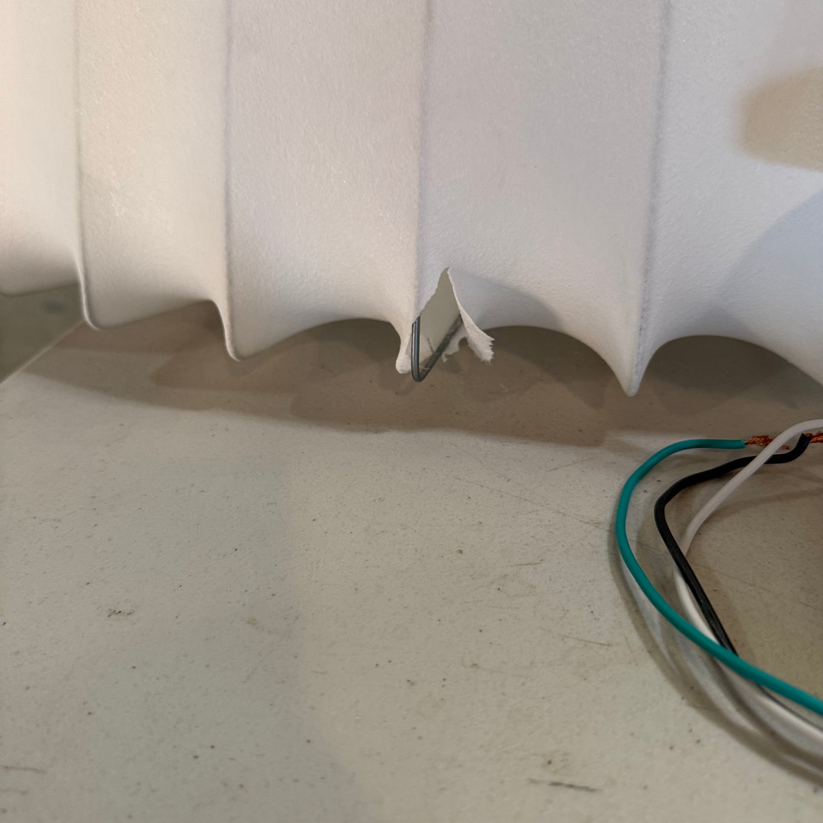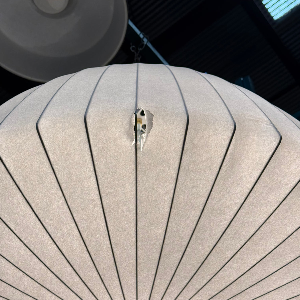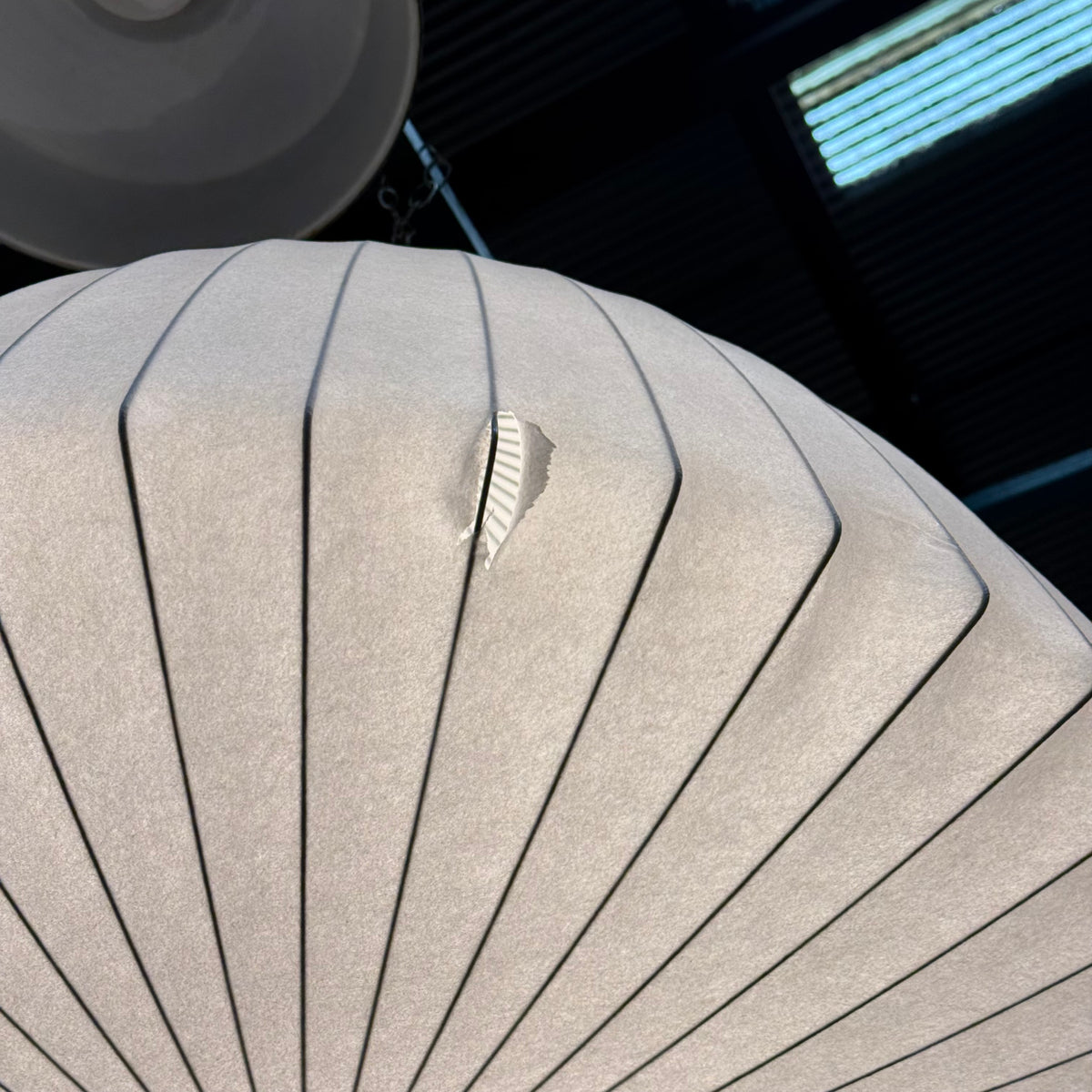 Please note, this light's shade will need repair as there is a large tear to the skin/shade. There are also other various smaller rips/tears to it throughout (see photos).