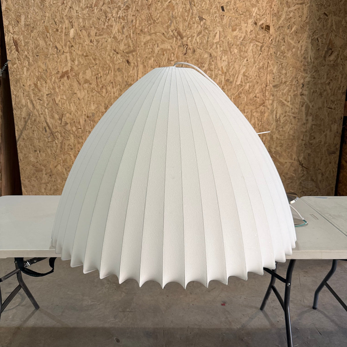 - Soft, sculpted plastic shade, sprayed and spun around steel wire frame construction
