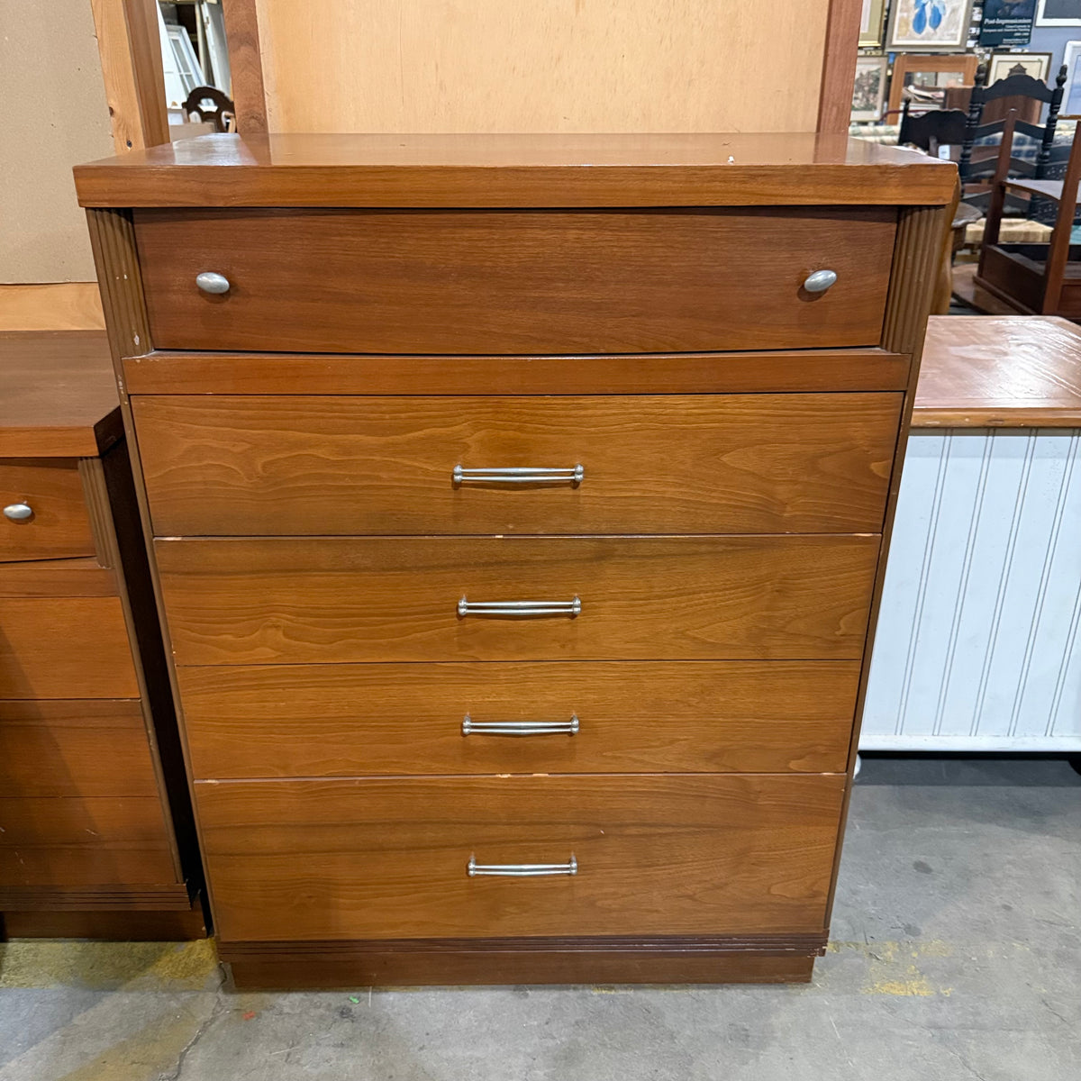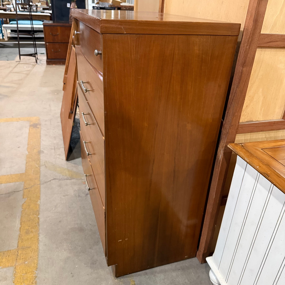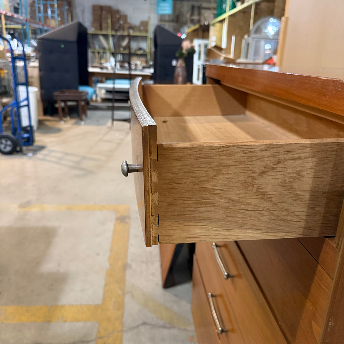 This previously owned tall mid-century dresser by Bassett Furniture Industries features:
