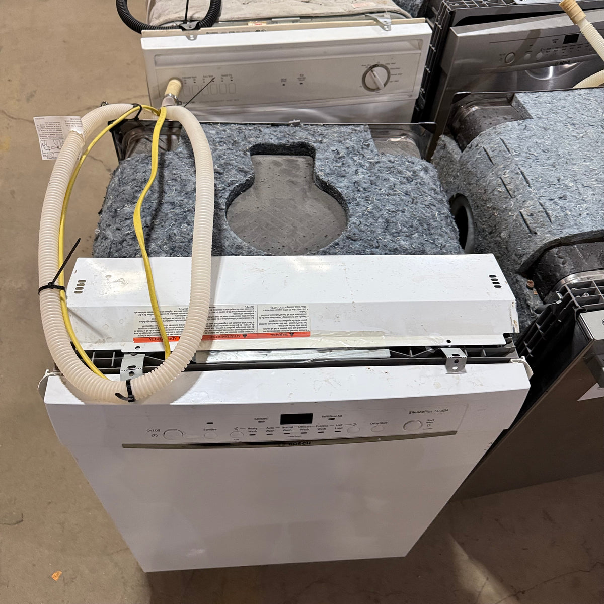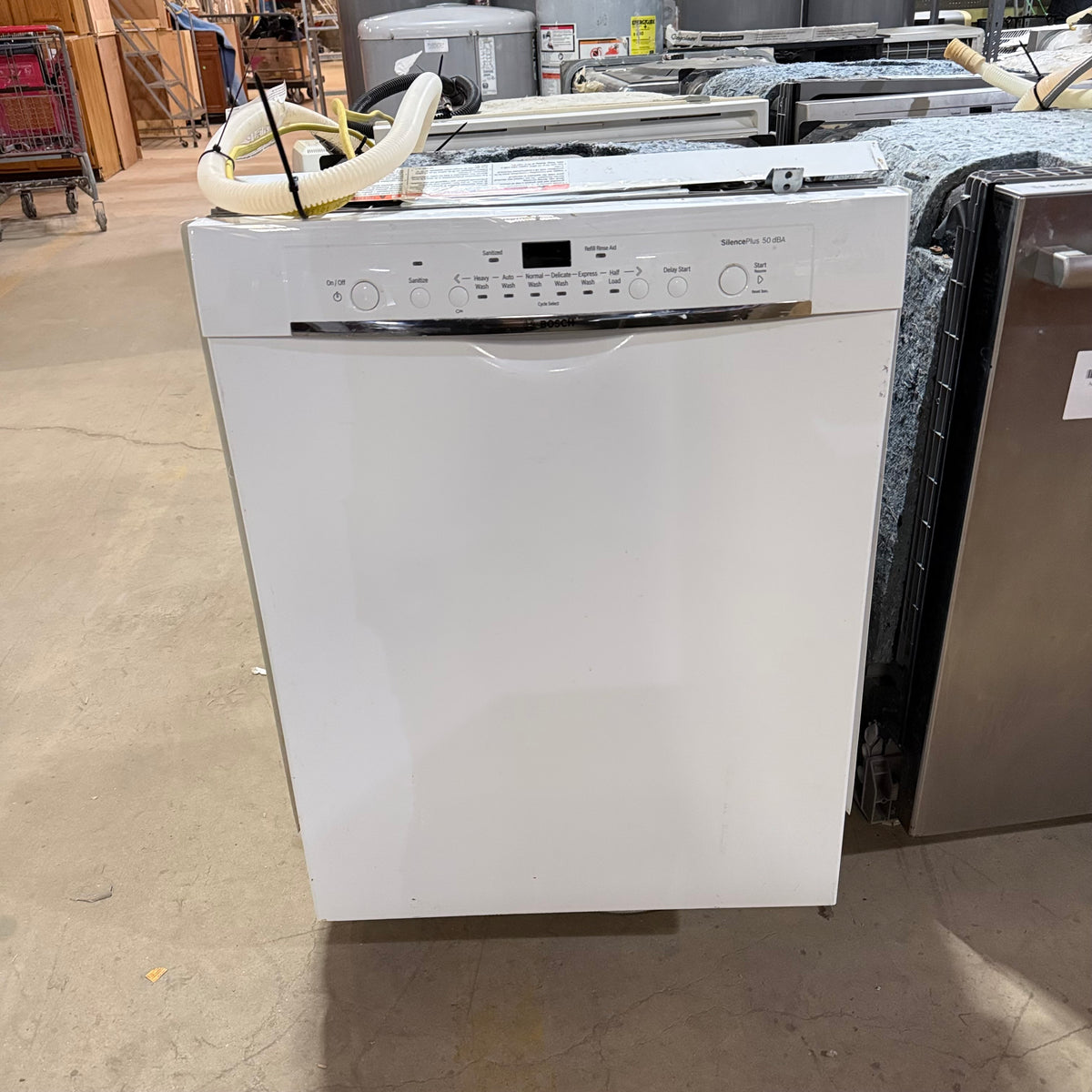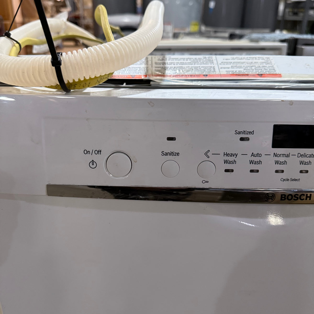 This product is a previously owned Bosch 100 Series under-counter white dishwasher. Features: