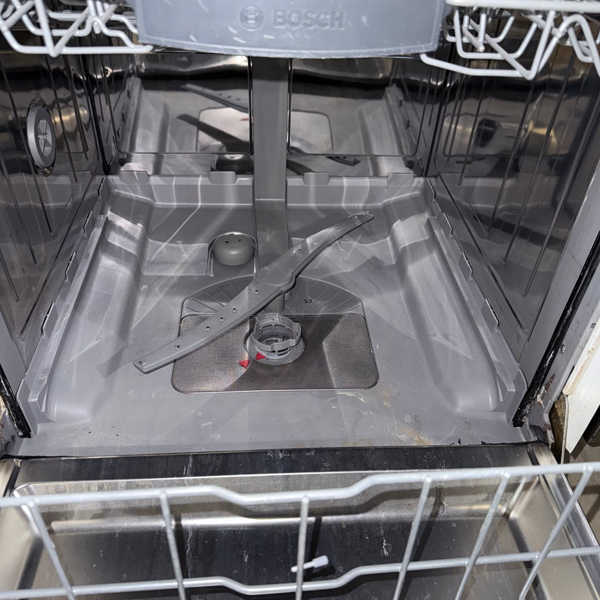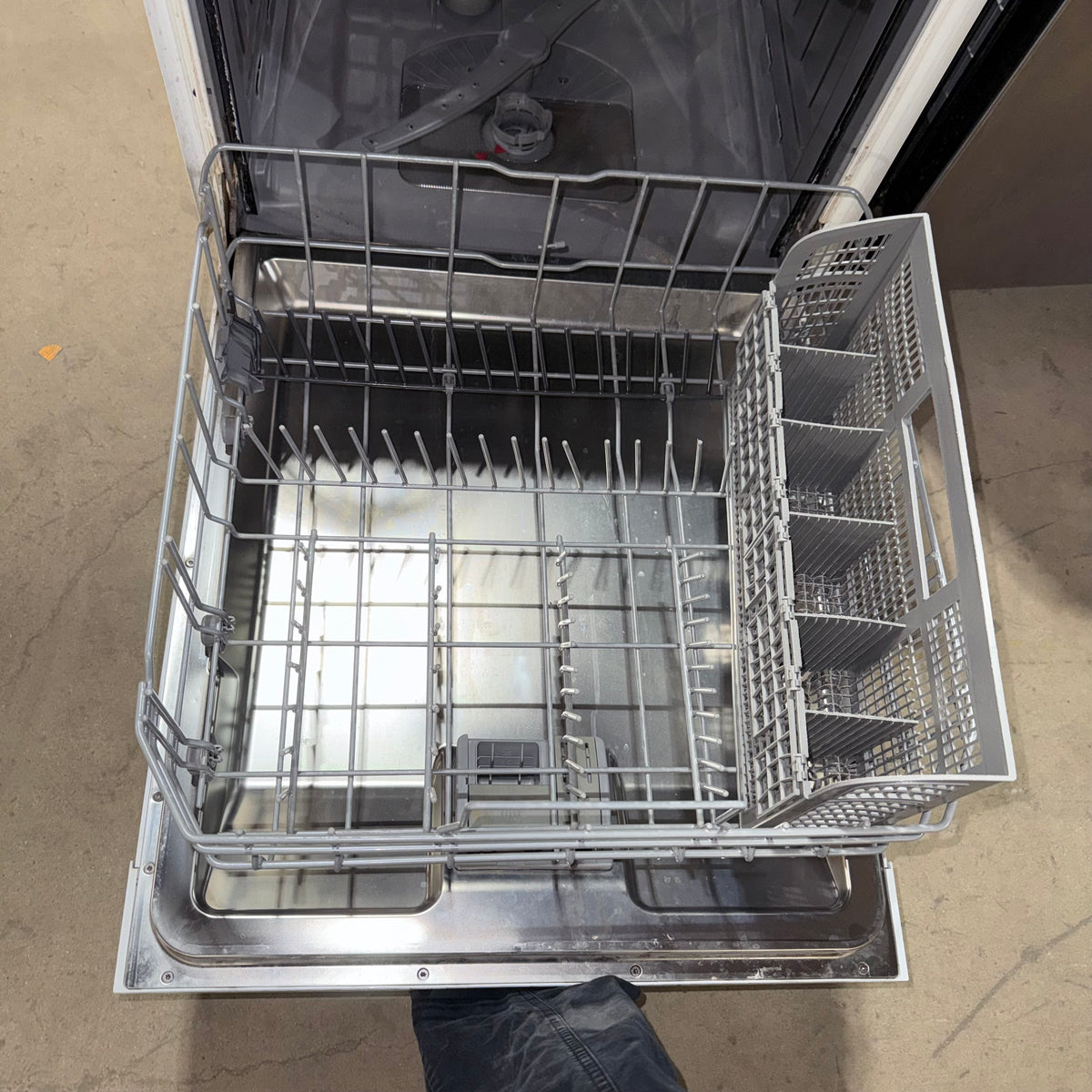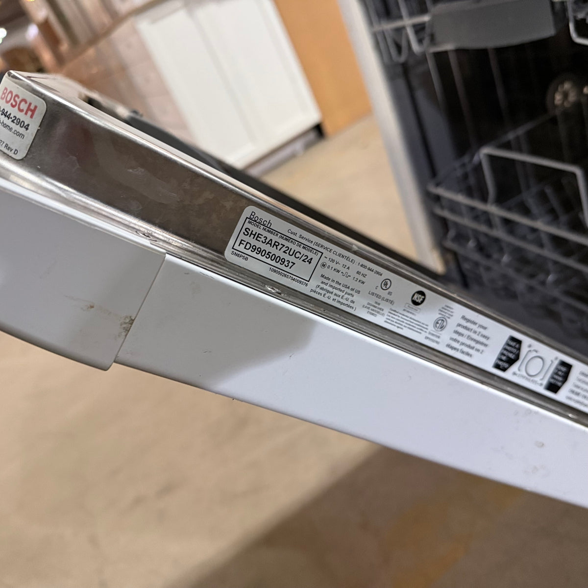 This product is a previously owned Bosch 100 Series under-counter white dishwasher. Features: