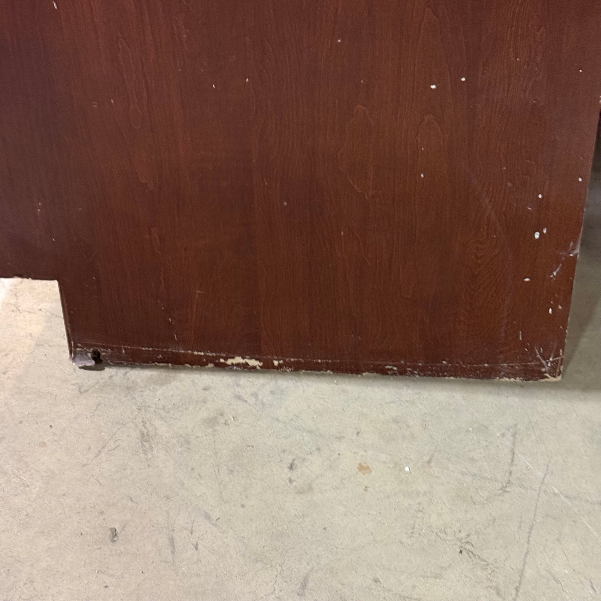 Please note, there is chipping to the base cabinet all the way along the bottom on both sides. Additional cleaning is recommended as there is caulking, dust and specks of paint along the front from deinstallation (see photos).