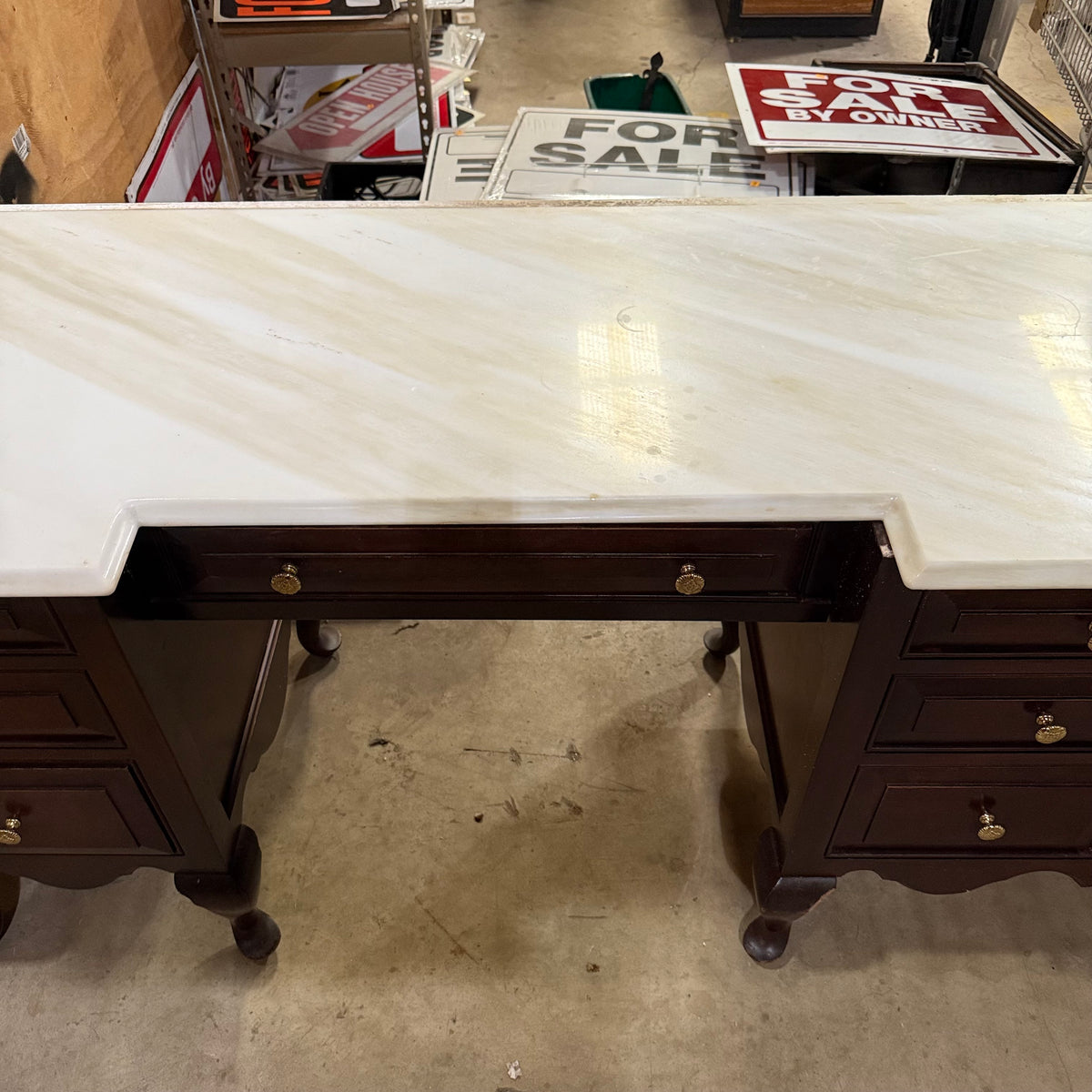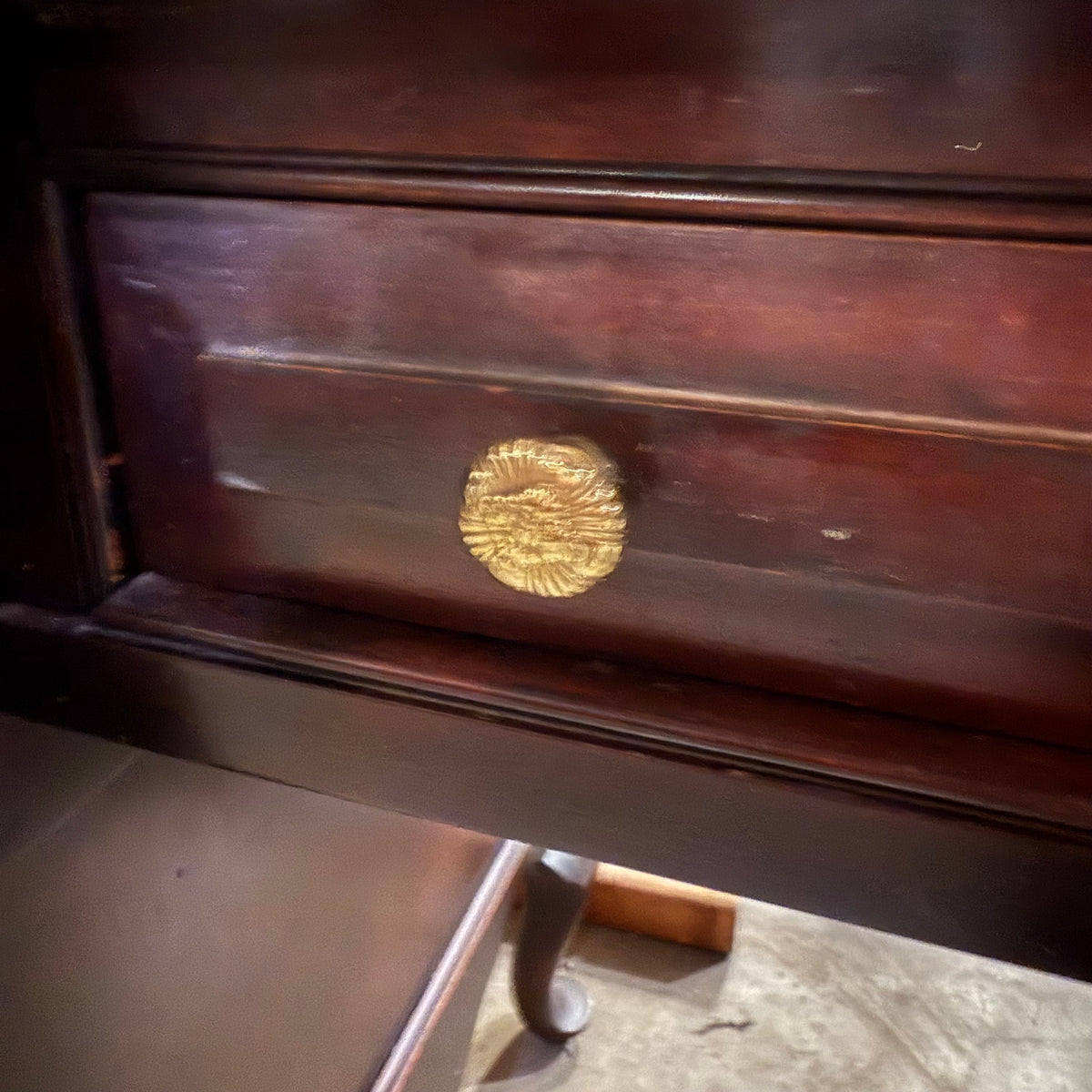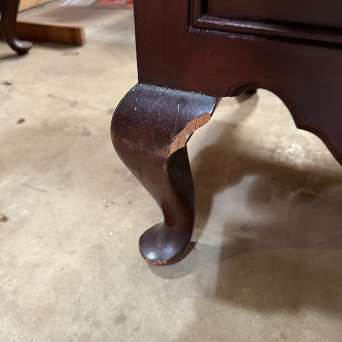 Please note, there is a gouge to one of the cabriole feet and overall general wear so additional cleaning is recommended (see photos).