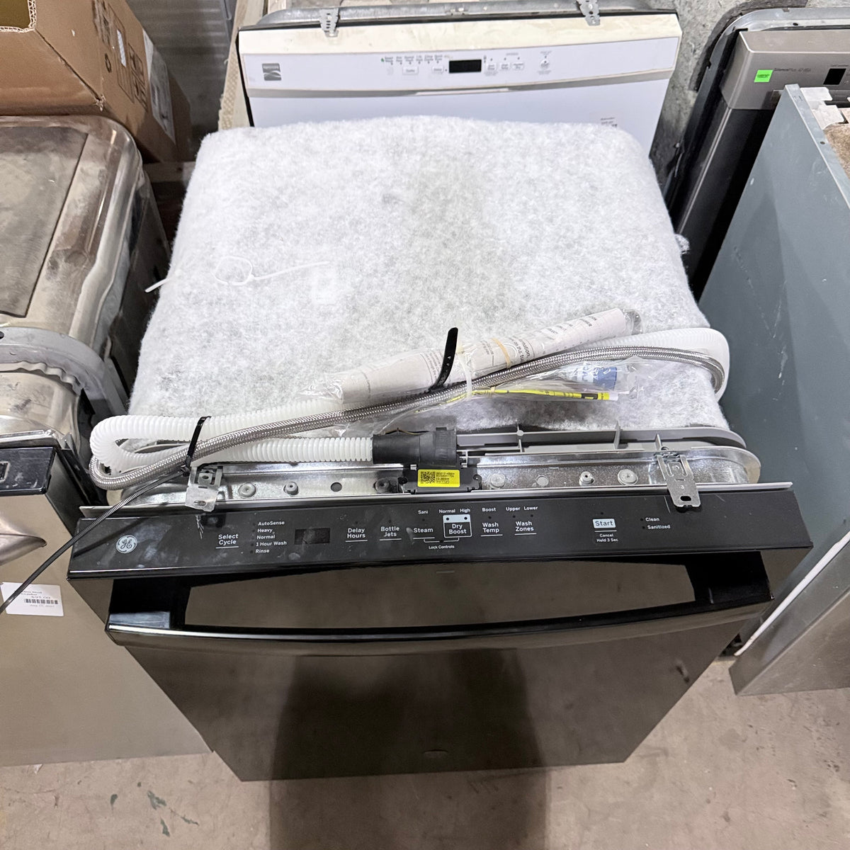 This product is a previously owned black GE® built-in dishwasher. Features: