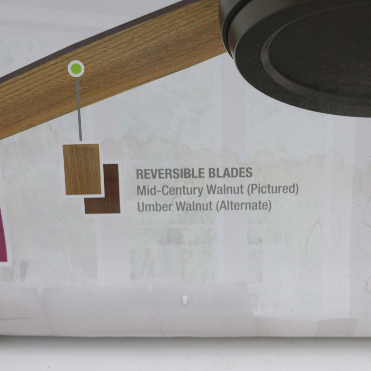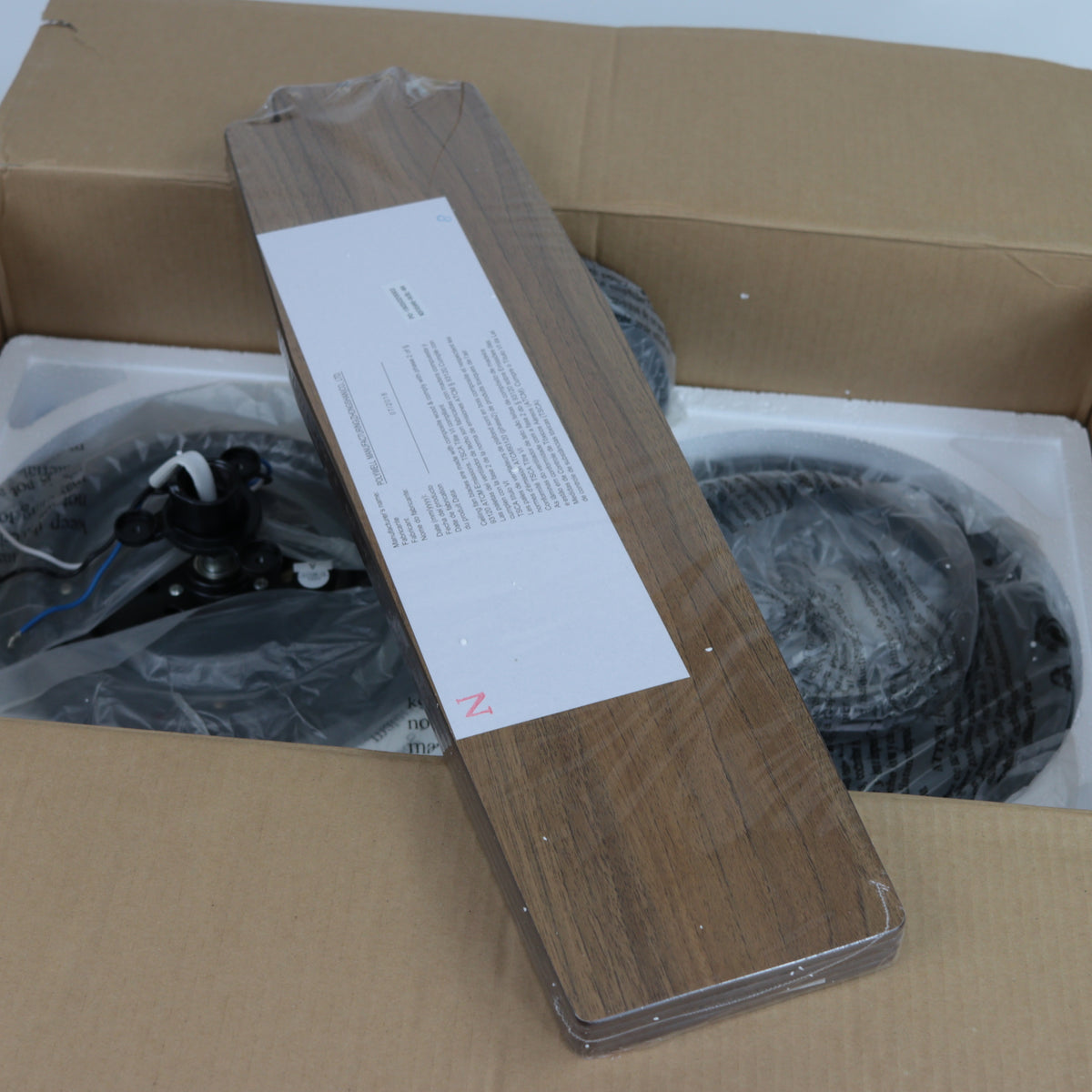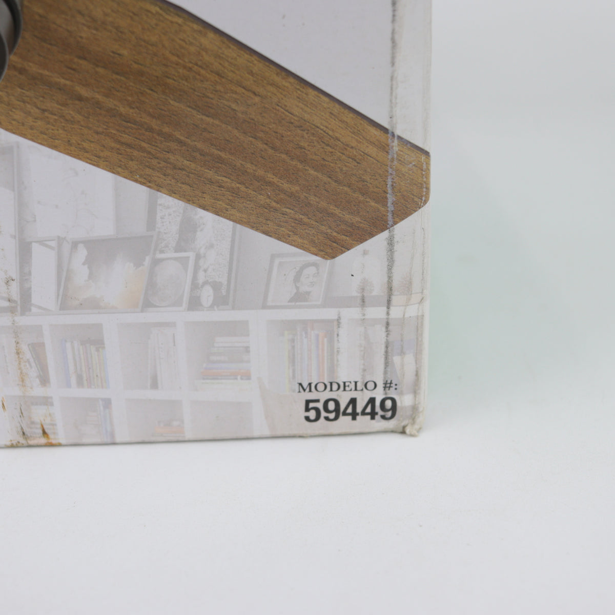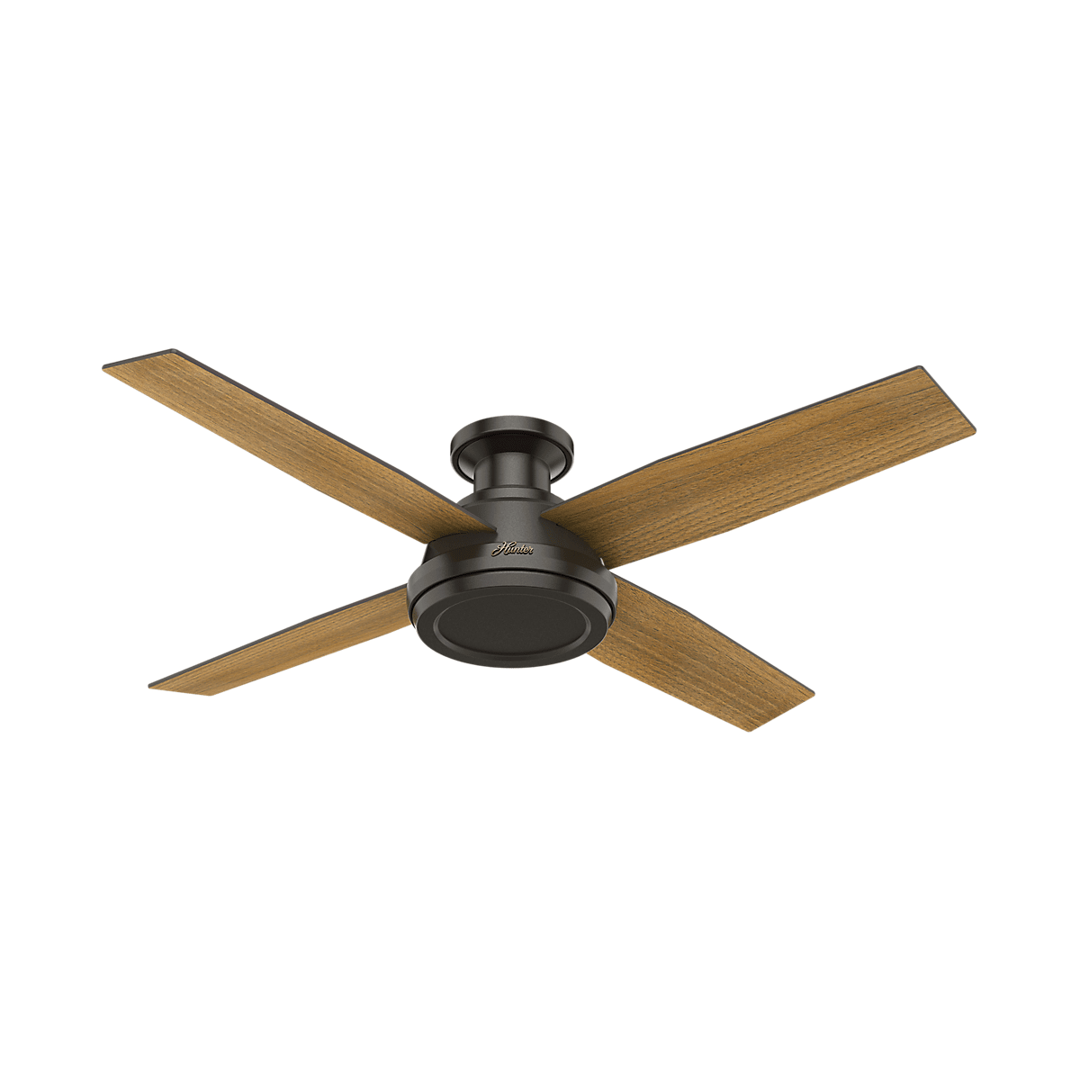 This is a new, in open-box Hunter 'Dempsey' 52" ceiling fan. Its box has been opened to inspect the contents.