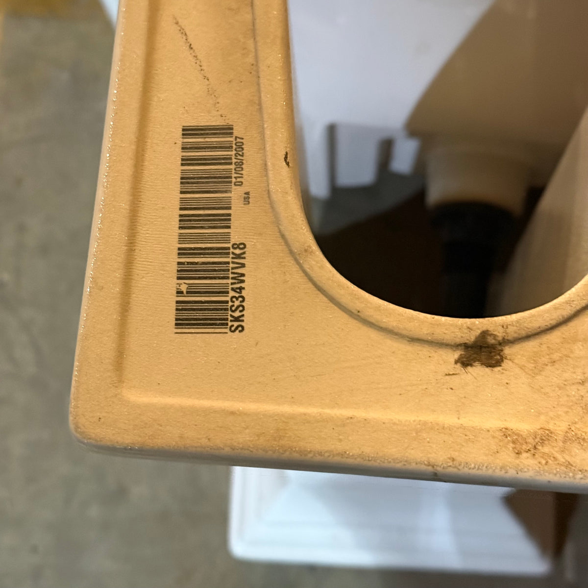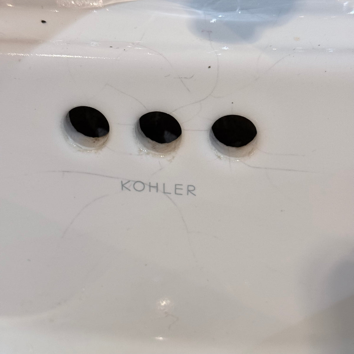 Please note, there are a few hairline crack marks to the glazed surface on the sink, nearby where the overflow drain is (see photos).