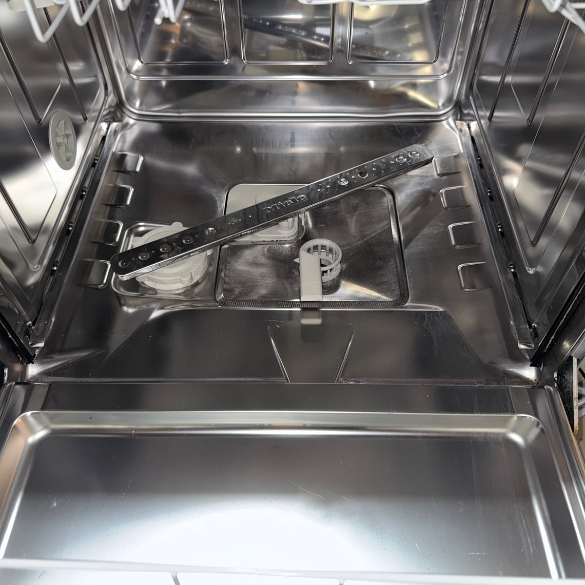 This product is a previously owned Miele under-counter stainless steel dishwasher. Features: