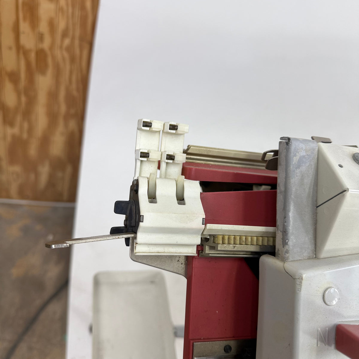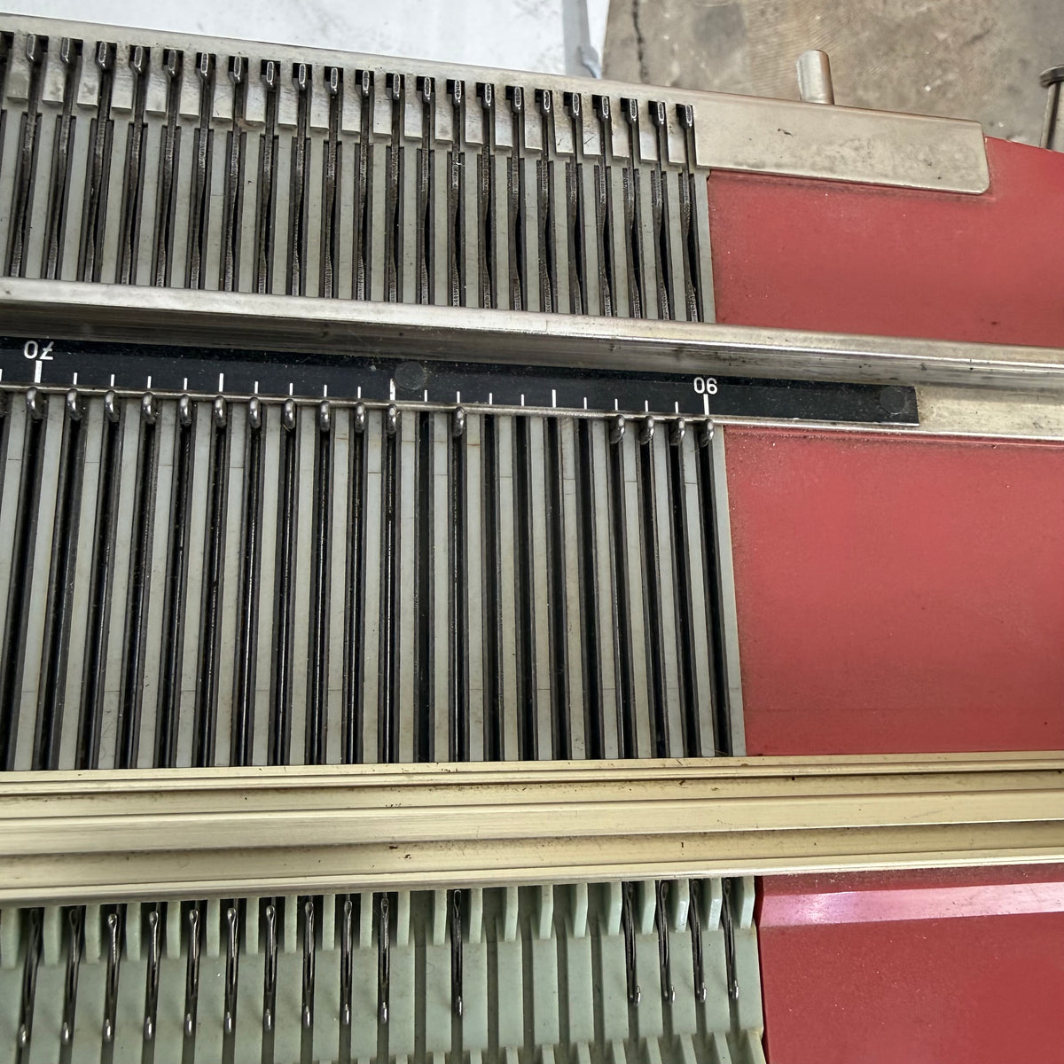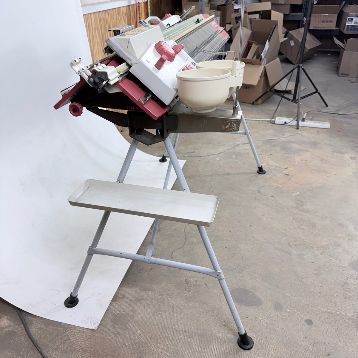 Please note, this machine is being sold as-is and may be incomplete. There are a few needles/pushers out of place that will have to be re-inserted but they are included with the accessories. There is also general wear throughout this machine from previous use (see photos).