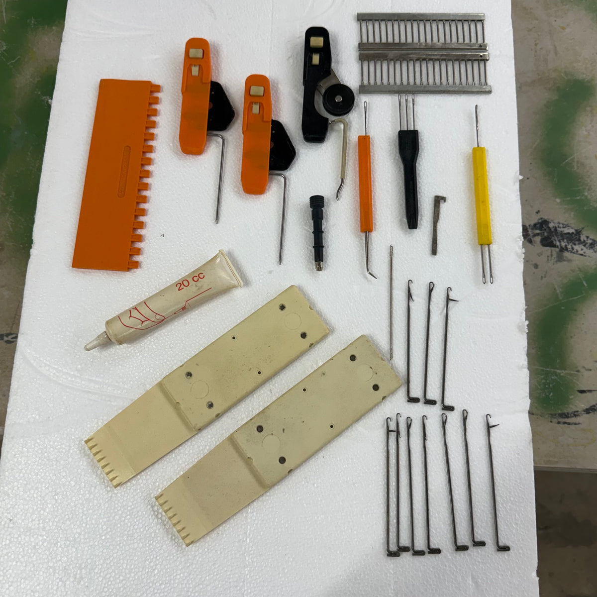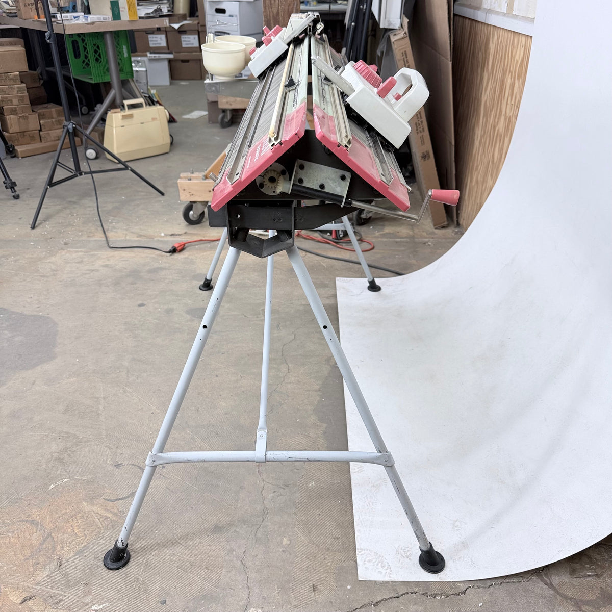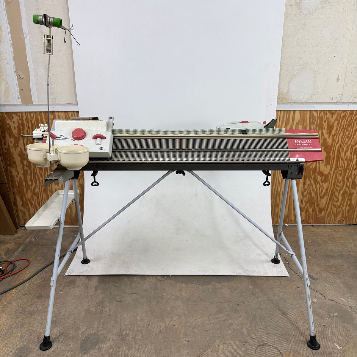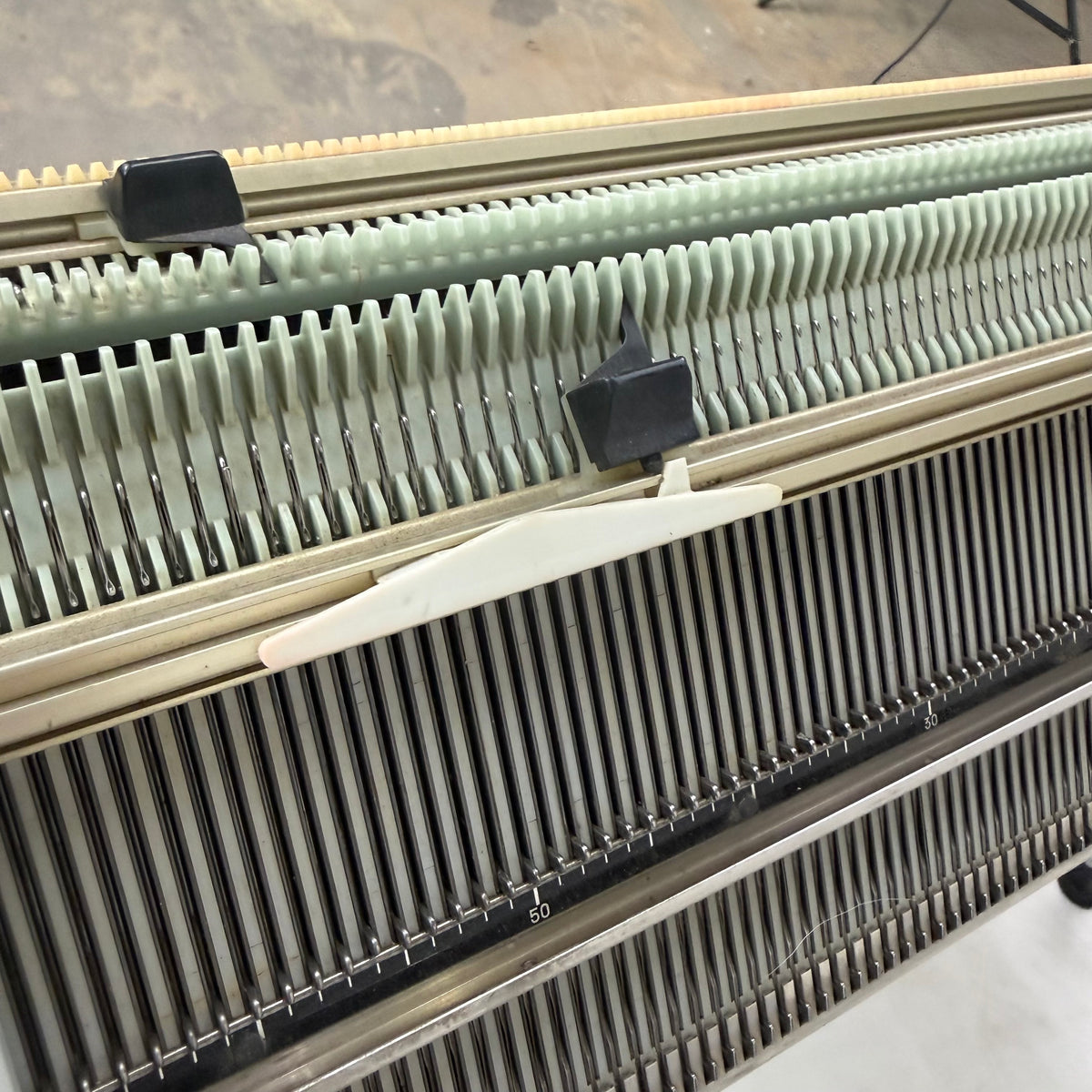 Please note, this machine is being sold as-is and may be incomplete. There are a few needles/pushers out of place that will have to be re-inserted but they are included with the accessories. There is also general wear throughout this machine from previous use (see photos).
