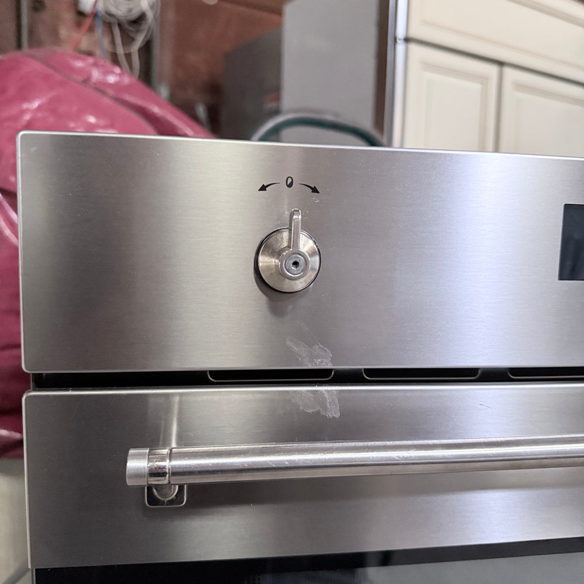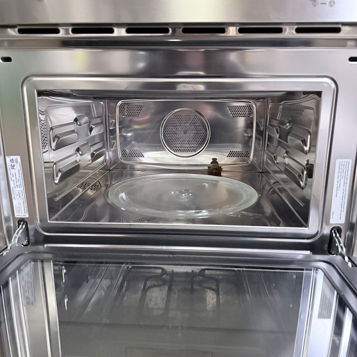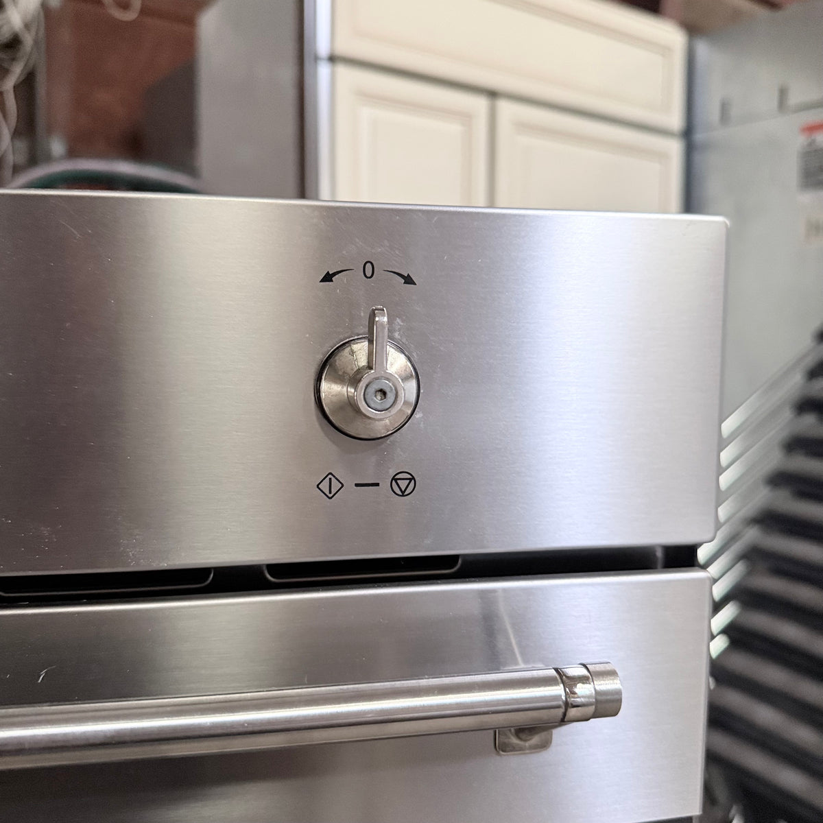 This product is a previously owned built-in electric speed oven with microwave by Smeg. Features: