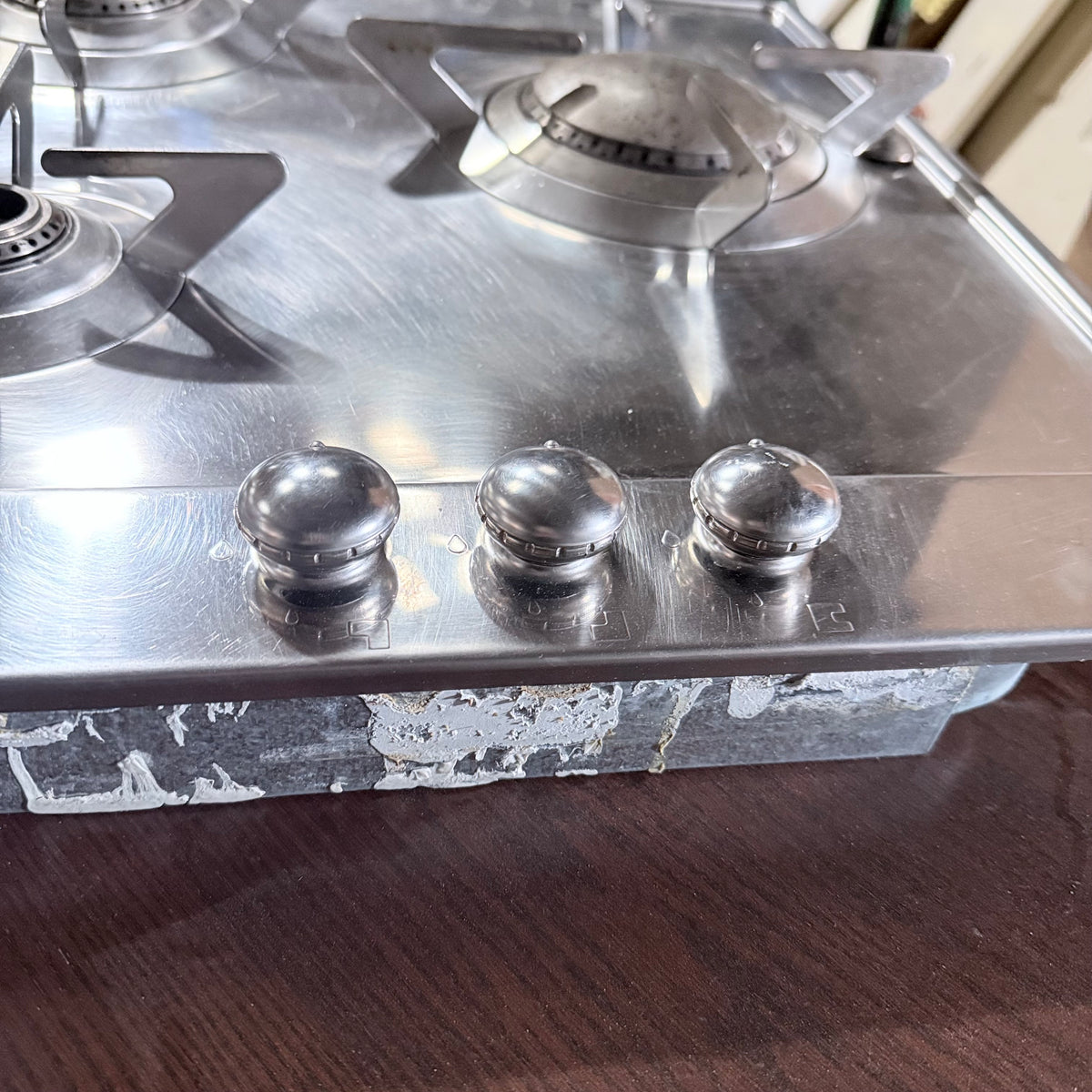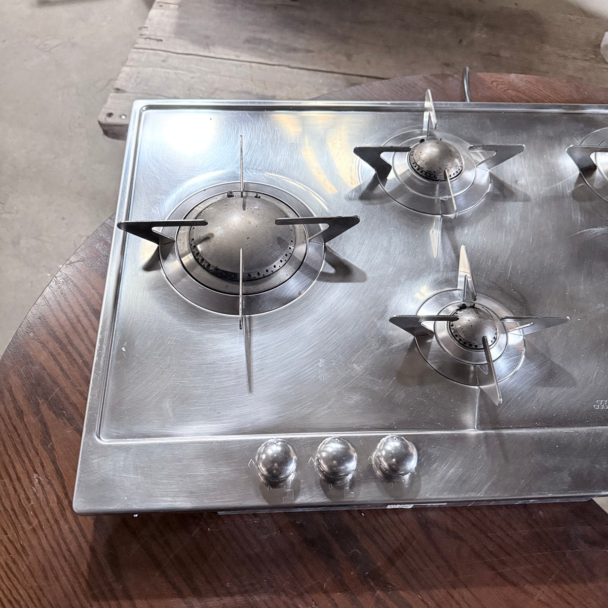 This product is a previously owned Smeg Piano stainless steel gas cooktop. Features: