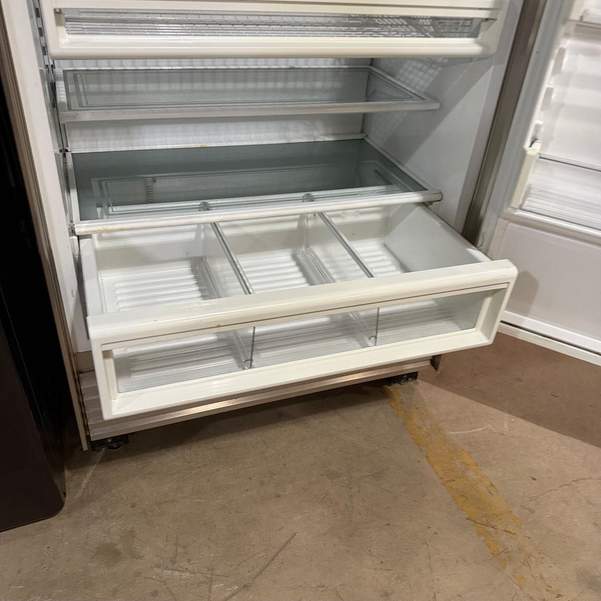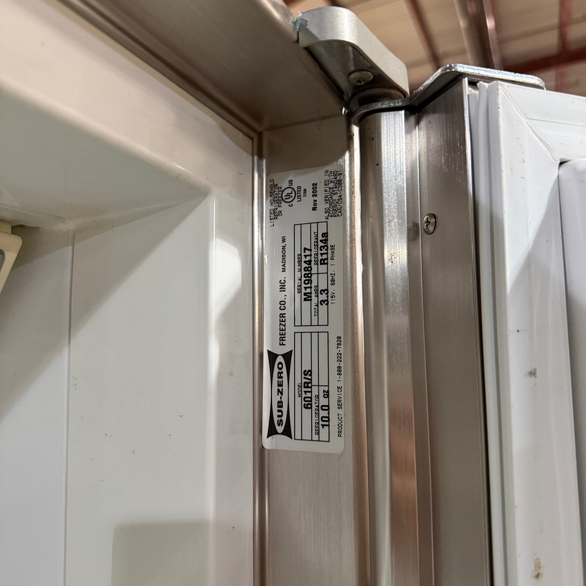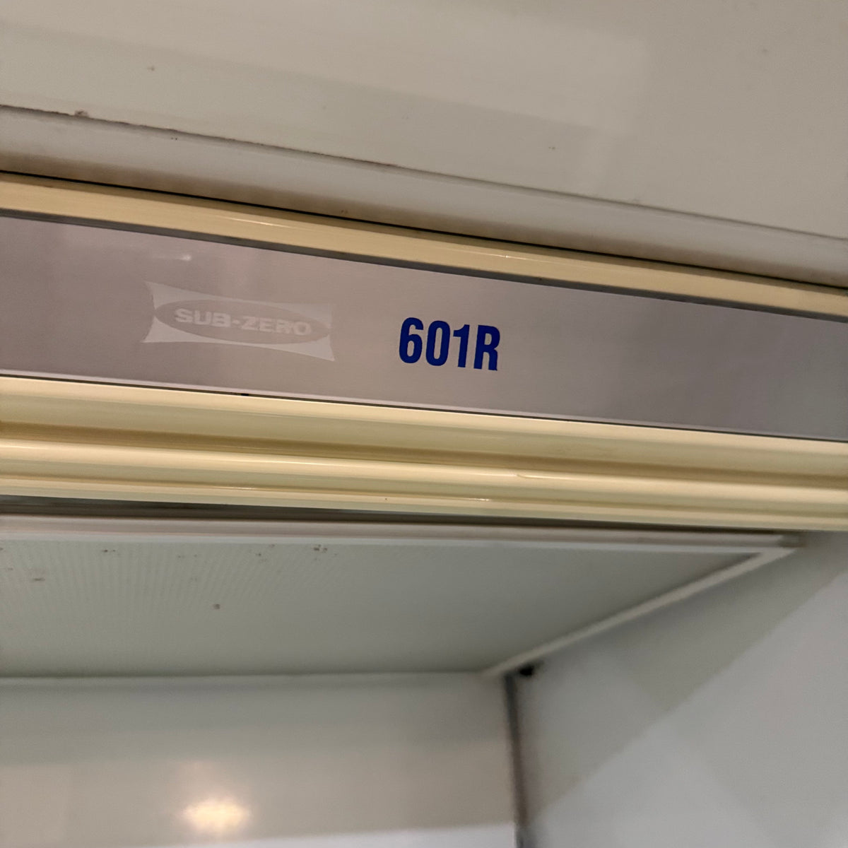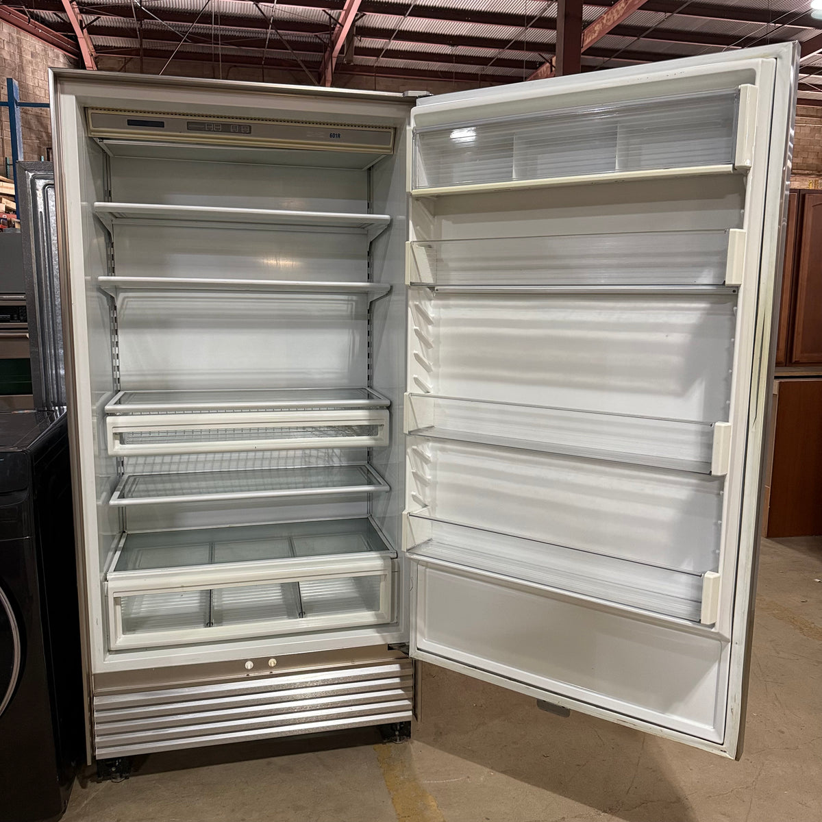 This product is a previously owned Sub-Zero 601R/S all-in-one stainless steel refrigerator. Note: this appliance is all refrigerator, no freezer.