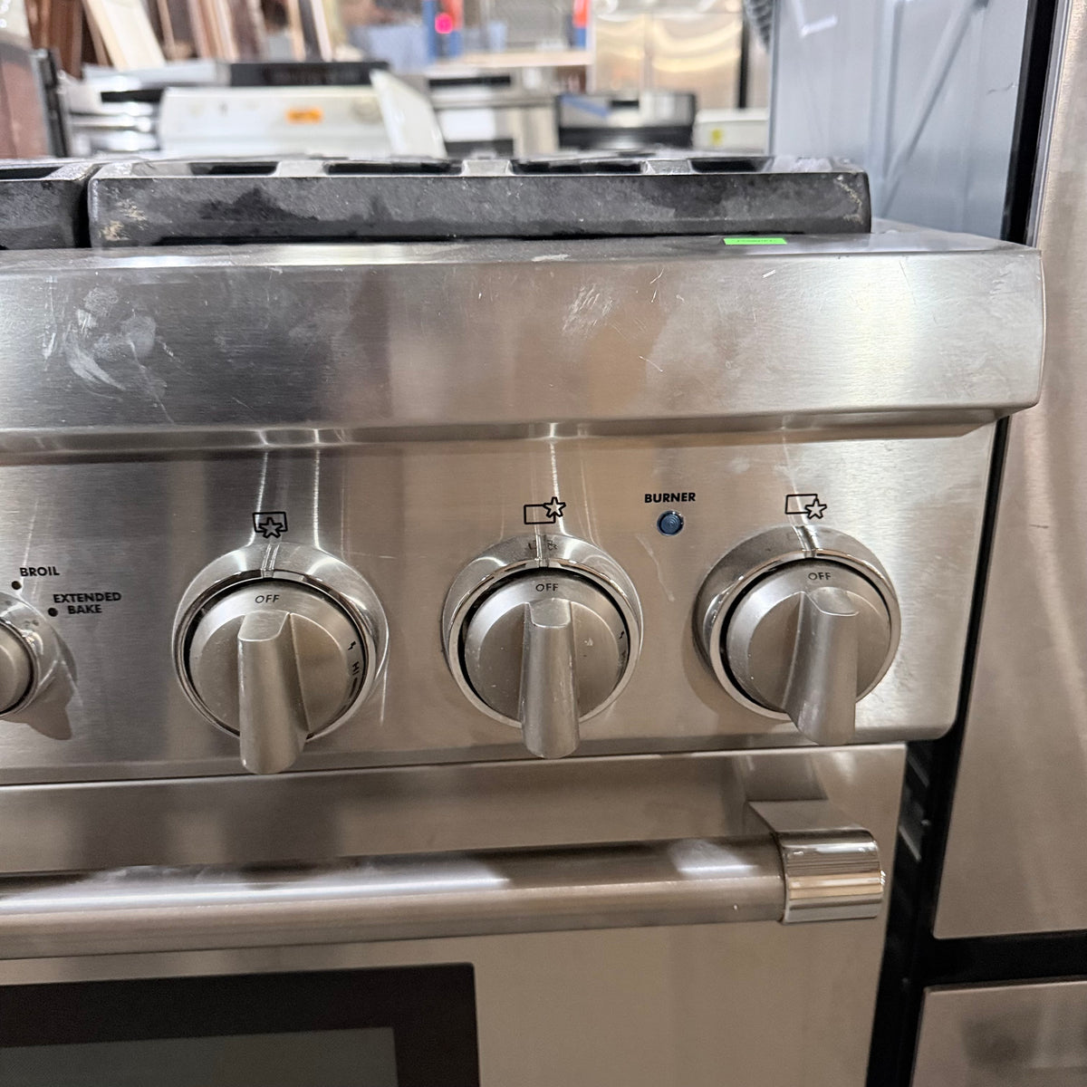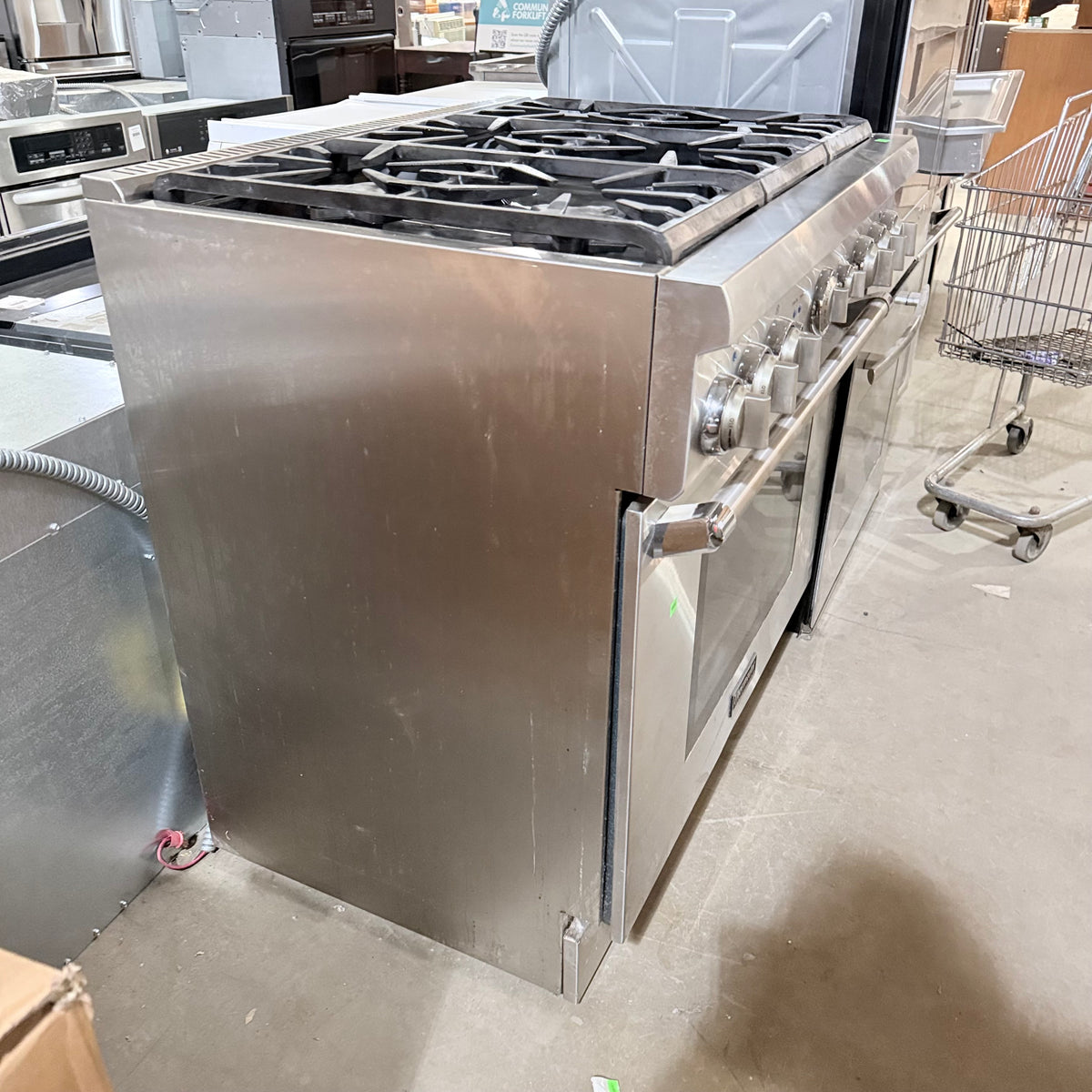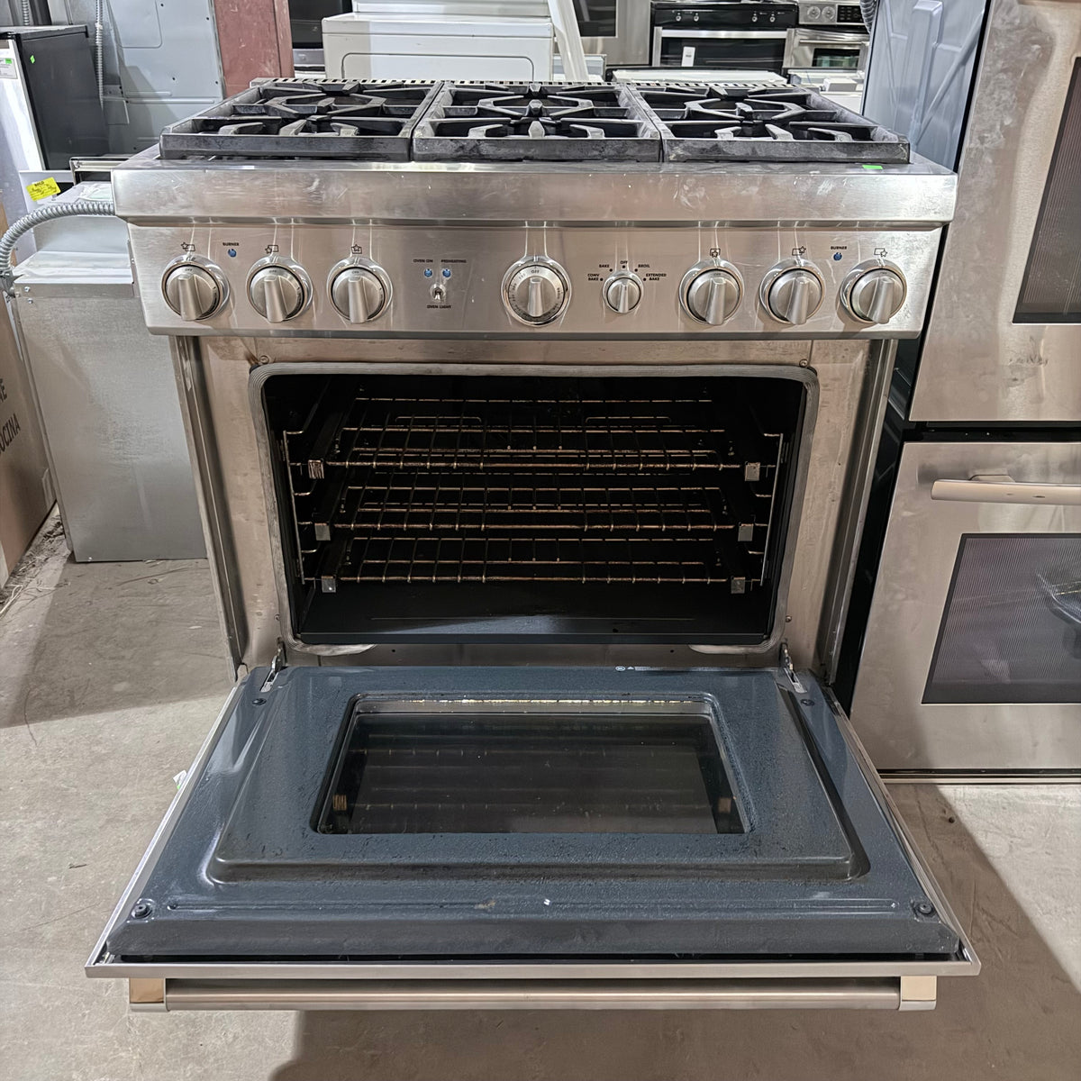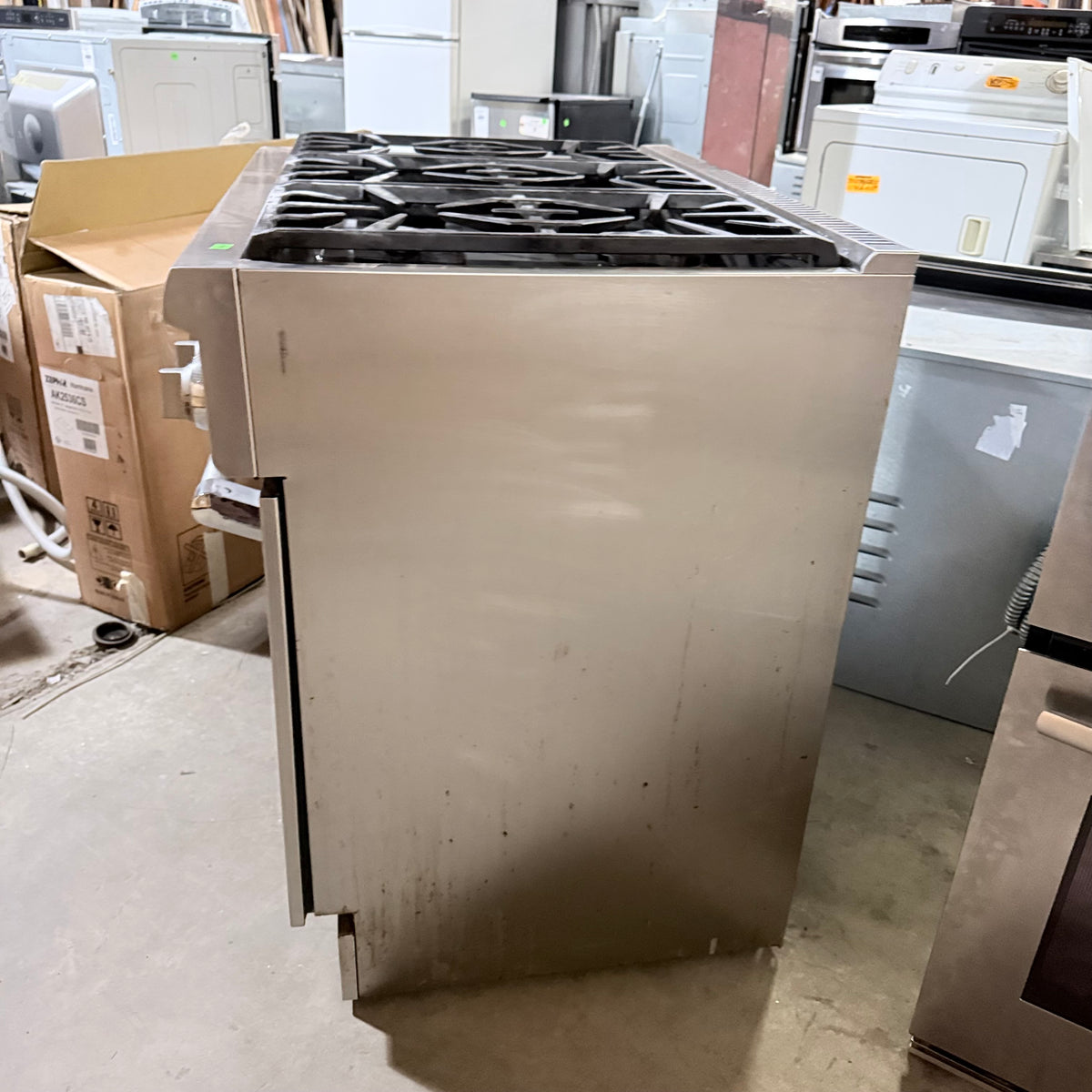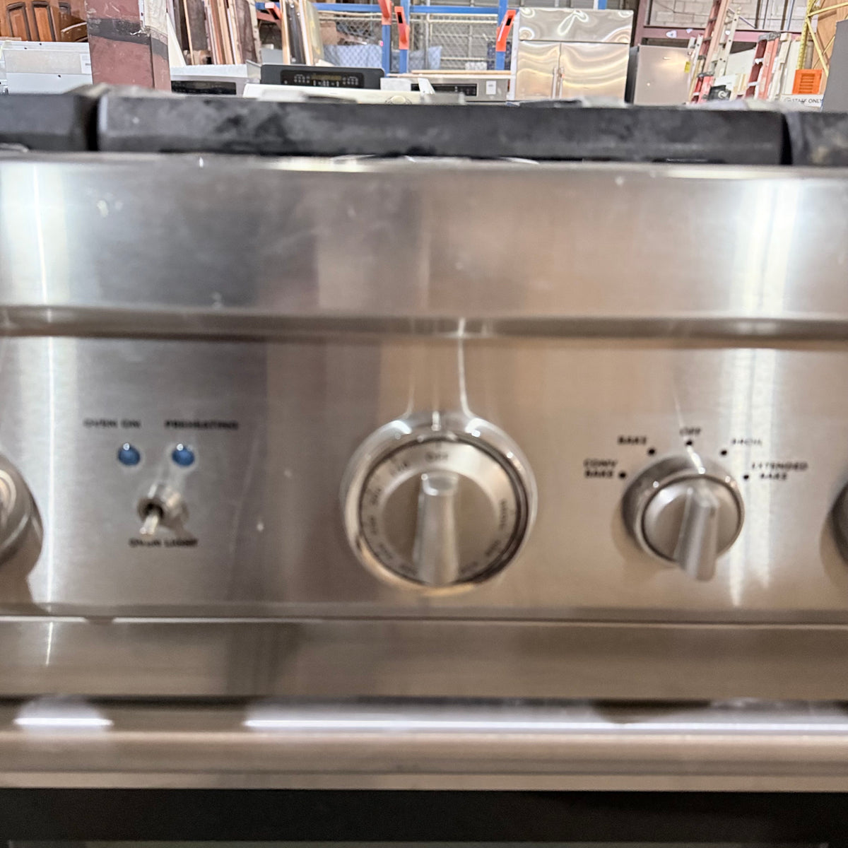 This product is a previously owned Thermador Professional Series 36-inch sealed burner gas range. Features: