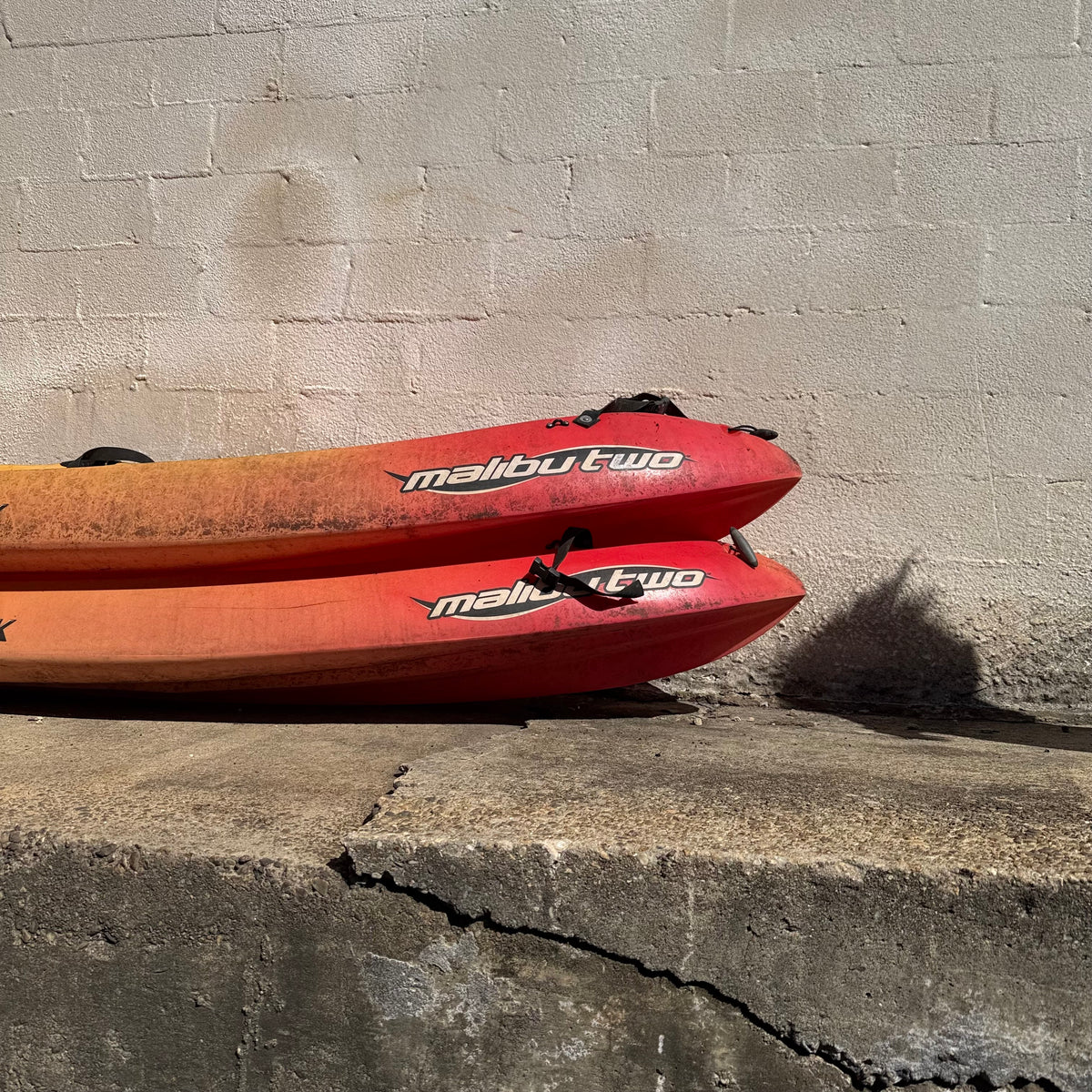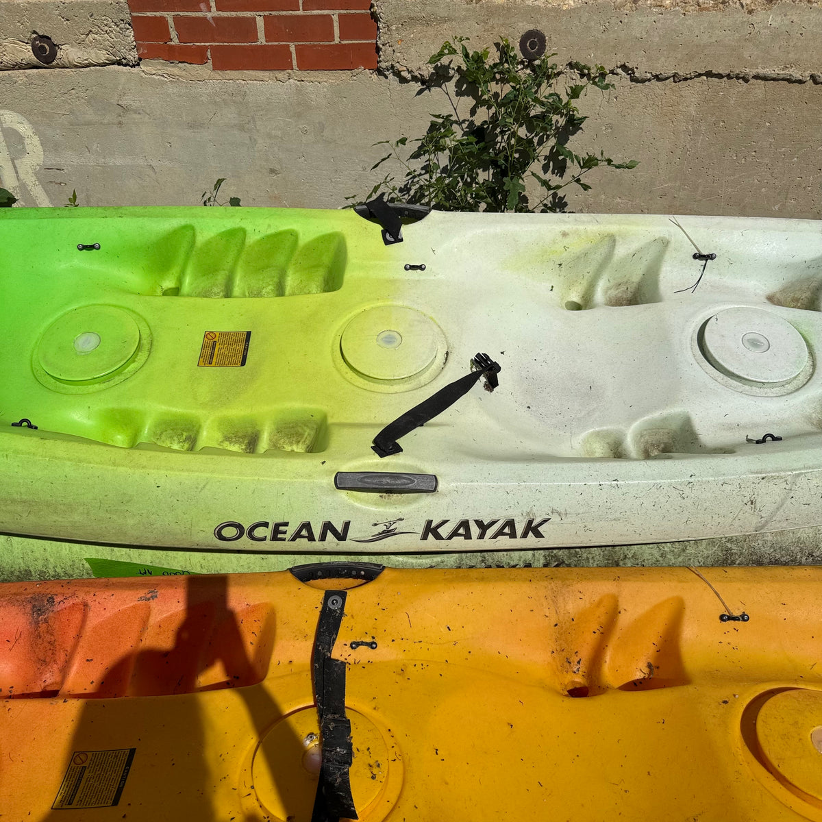These previously owned kayaks come with two built-in sit-on-top seats, two black woven seat covers and two double-sided paddles included. The paddles you receive may not be the same ones photographed in our listing.