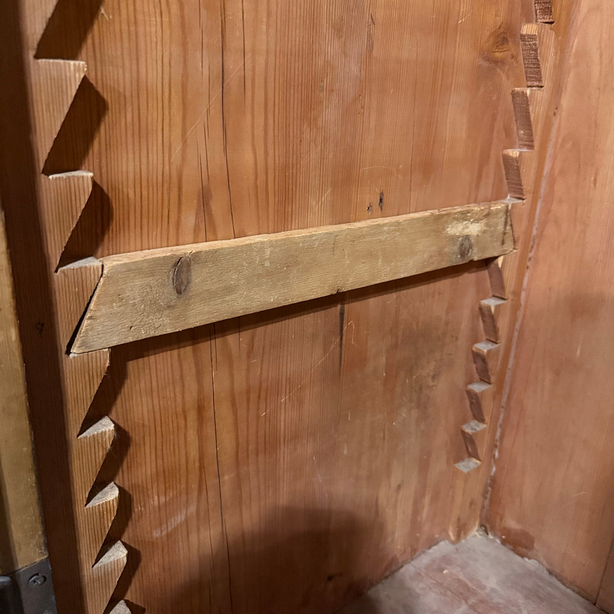 Please note, there is an overall extensive amount of wear to this cabinet in many places including some chipping/gouges towards the base and along the back (see photos).