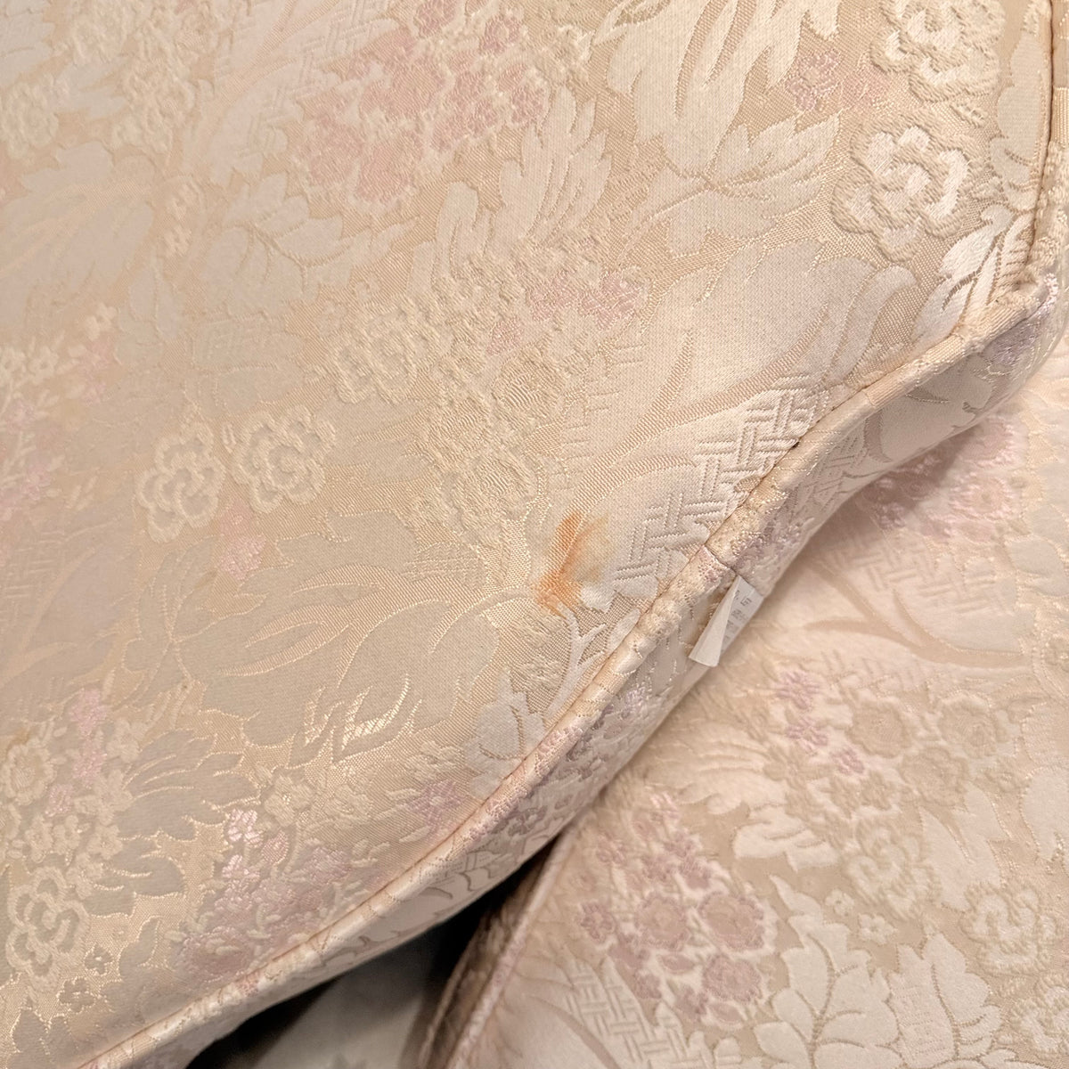 Please note, there is a small stain to the fabric on one of the seat cushions and there are also a few small chips to the frame in some areas, especially towards the feet. There is also fading to the finish in some areas (see photos).