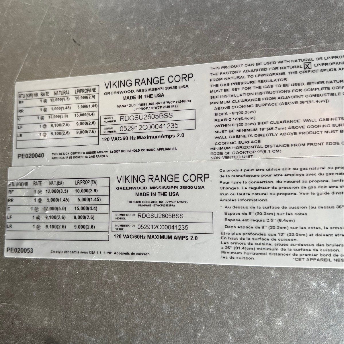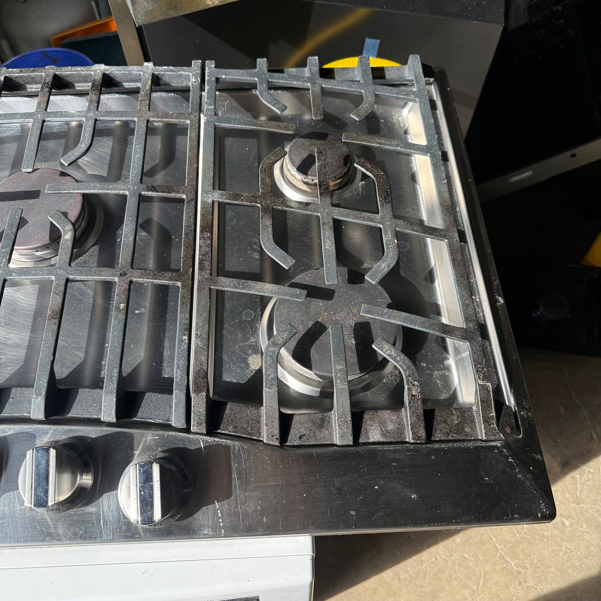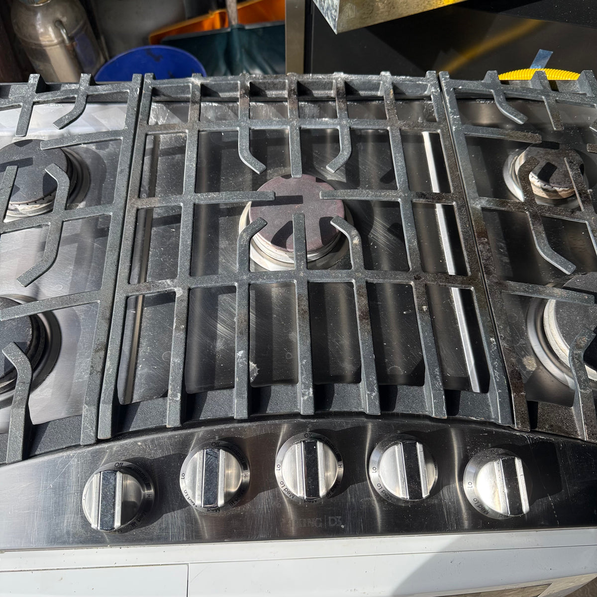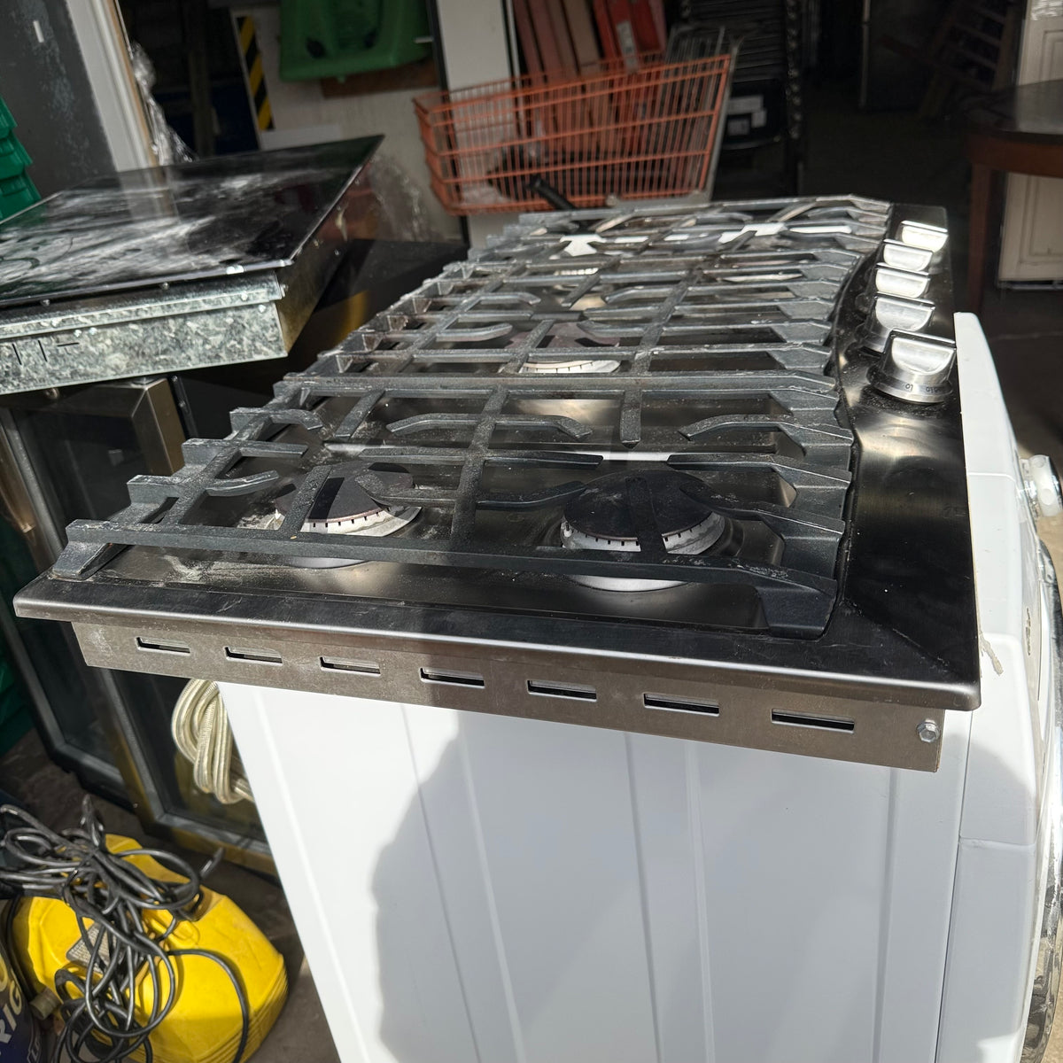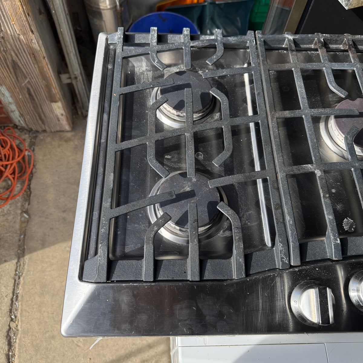 This product is a previously owned stainless steel Viking D3 gas cooktop. Features: